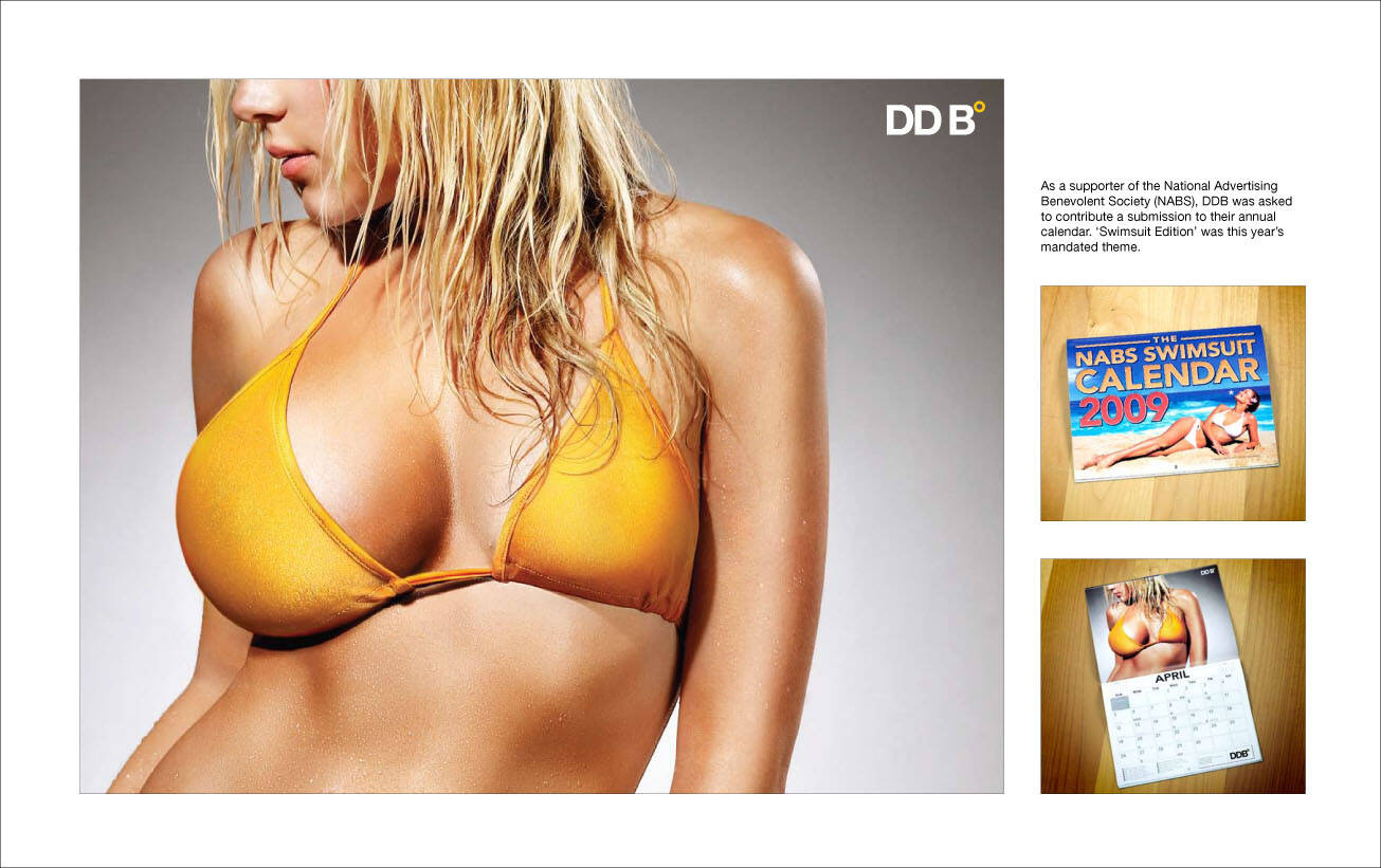 As a supporter of the National Advertising Benevolent Society (NABS), DDB Vancouver was asked to contribute a submission to their annual calendar. ‘Swimsuit Edition’ was this year’s mandated theme.