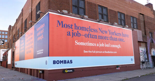 Bombas, a comfort-focused apparel brand that aims to help those experiencing homelessness by donating an item for every item purchased, has launched a fully typographic OOH campaign called “Bombas 100 Million” that is completely dedicated to advancing education and conversations around homelessness.