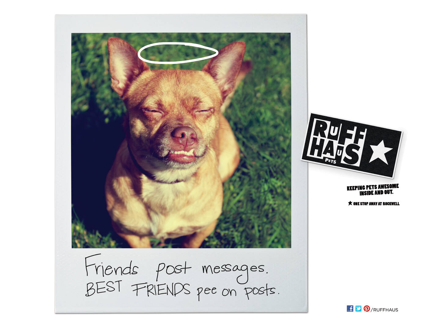 This professional campaign titled 'Can't Choose Family, Pee on Posts' was published in United States in June, 2012. It was created for the brand: Ruff Haus Pets, by ad agency: Doner. This Print medium campaign is related to the House, Garden industry and contains 2 media assets. It was submitted over 13 years ago.