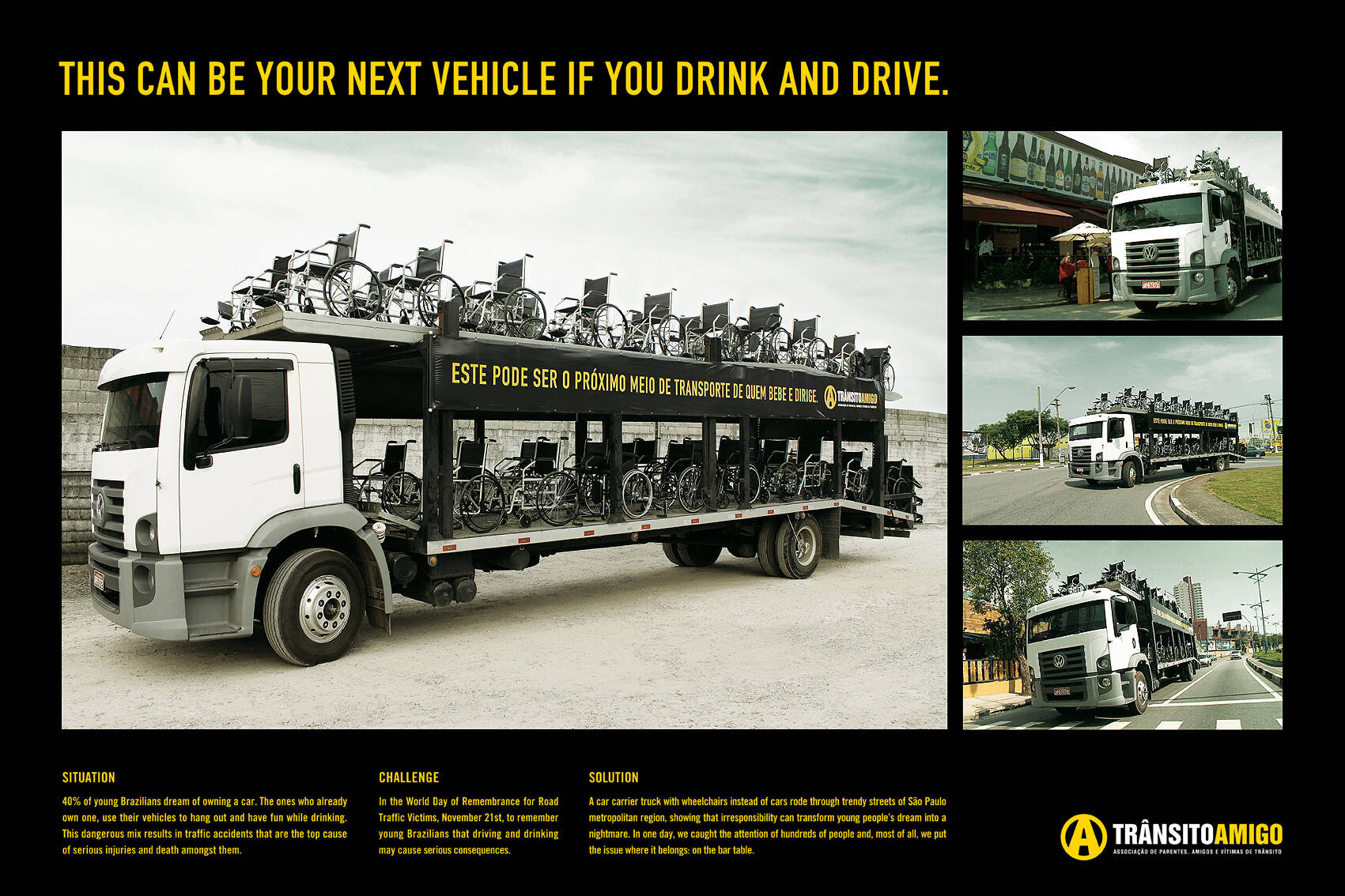 This professional campaign titled 'Car carrier truck' was published in Brazil in November, 2010. It was created for the brand: Trânsito Amigo, by ad agency: Ageisobar. This Ambient medium campaign is related to the Public Interest industry and contains 1 media asset. It was submitted almost 15 years ago.