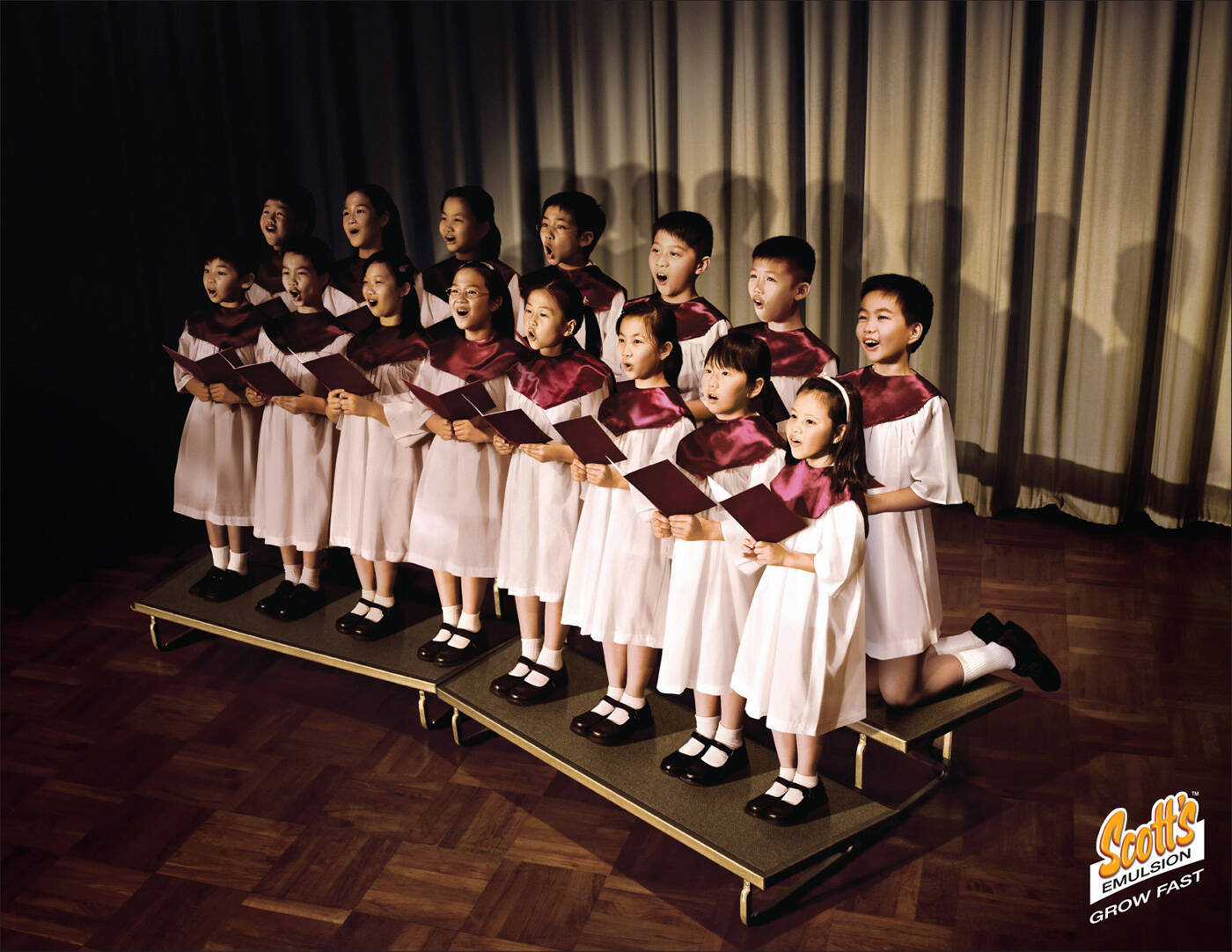 This professional campaign titled 'Car, Choir' was published in China in June, 2010. It was created for the brand: Scott's Emulsion, by ad agency: Grey. This Print medium campaign is related to the Food industry and contains 2 media assets. It was submitted over 15 years ago.