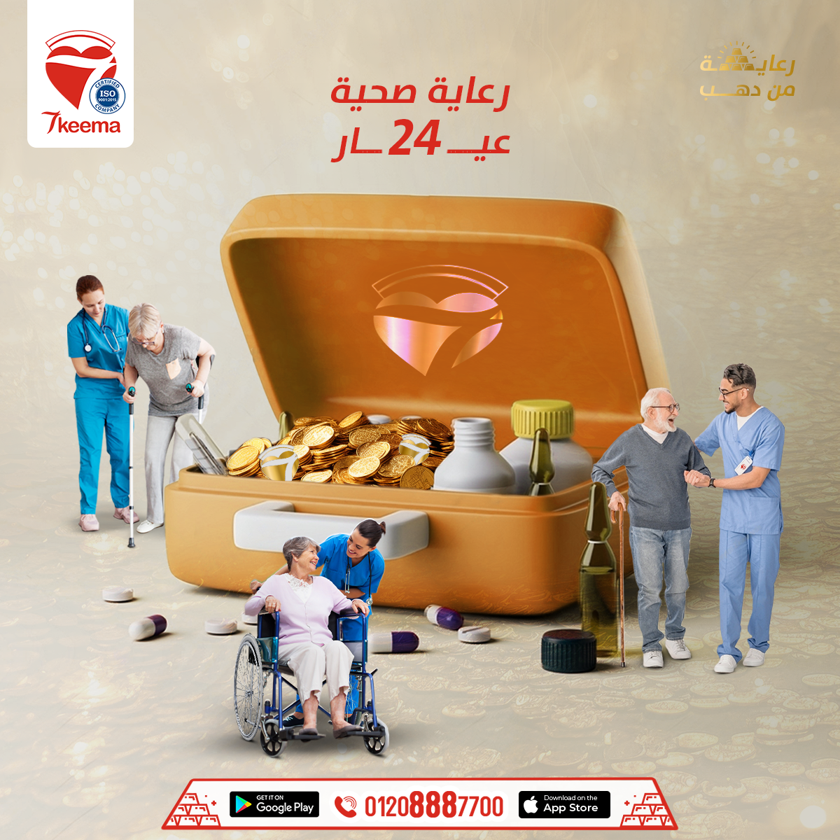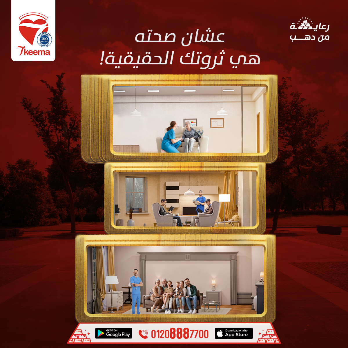 There is nothing more valuable than seeing your loved ones happy and healthy at home. 7keema’s "Care Made of Gold" campaign is our promise to treat your family with the utmost precious care and professional dedication. From specialized elderly care to professional nursing, we bring the "Gold Standard" of health directly to your doorstep. Invest in their well-being today. Download the app to explore our premium home care packages.