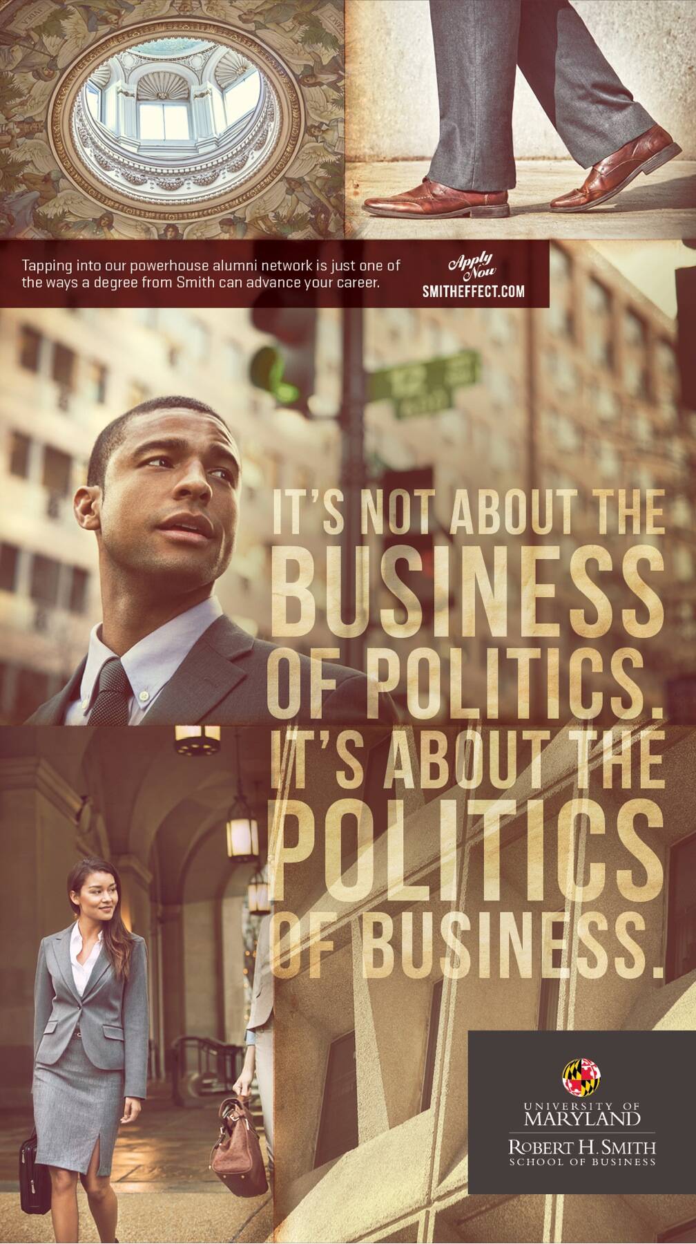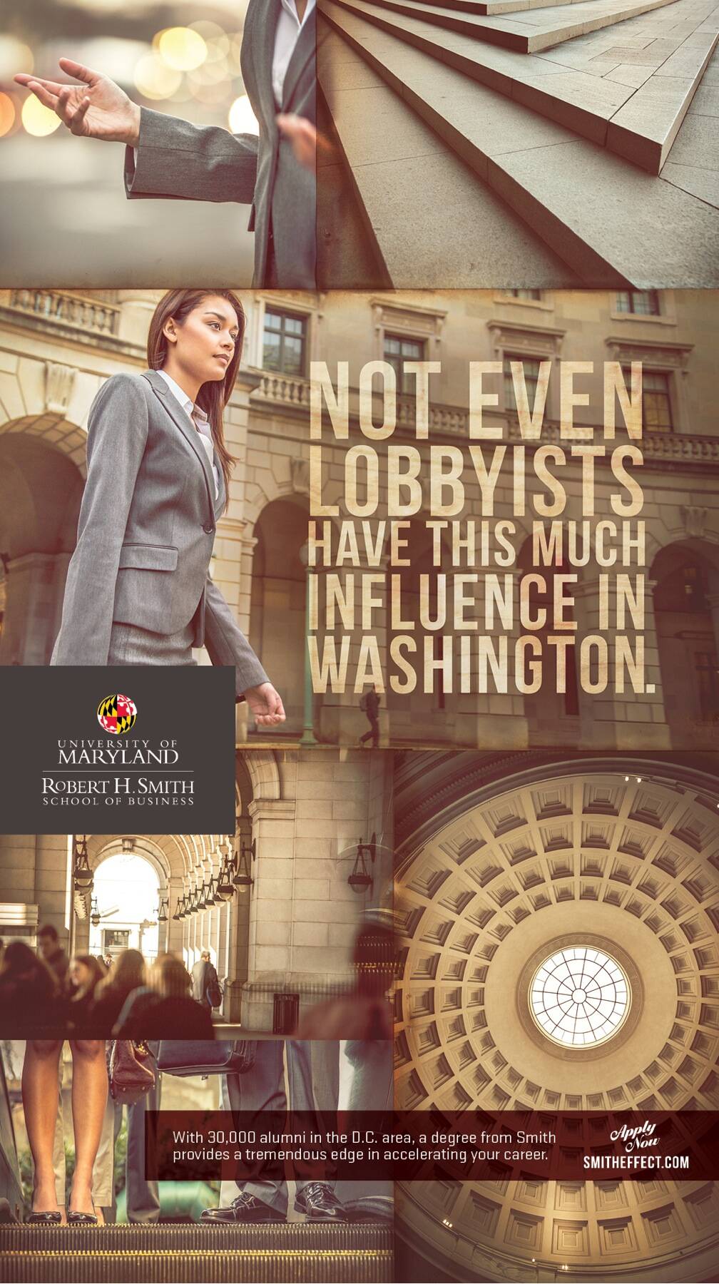 It’s hard to imagine a business school coming out and talking about [advertising] something other than professors, curriculum and academic rankings. But that’s exactly what we did. We knew that to really connect with today’s potential students we had to stand out in this sea of sameness with a message unique to us. Our message was that beyond the quality professors and top rankings we had the largest, most powerful network in the D.C. region. And this network held major influence on how these students could get ahead in the real world of business. It all came to life with intelligent and thought-provoking headlines and a visual treatment that was decidedly modern and sophisticated.