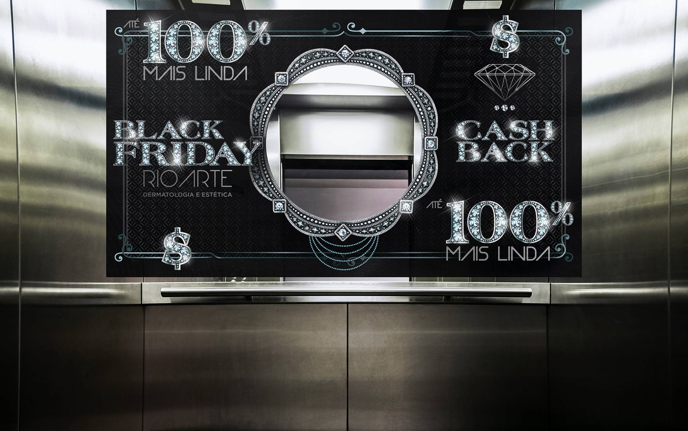 On this black Friday Rio Arte started a Cash Back strategy for next beauty procedure in the clinic. They created bills that emulate the light effect of precious rocks such as diamonds, rubies, emeralds and amber. This brings out a touch of sophistication and adds an extra value of the procedure once putted next to beautiful women full of attitude. Those “Cash Back Bills” are putted inside a closed urn and the client picks one out, where it can get up to 60% in cash back. There are also photo booths on display inside everyone of the 14 stores so the client can take a quick photo, post on their social account tag @rioarteresultado use the hashtag #valordabeleza (aka beauty value) and win up to a R$ 100,00 to be spent in any beauty procedure of the clinic.