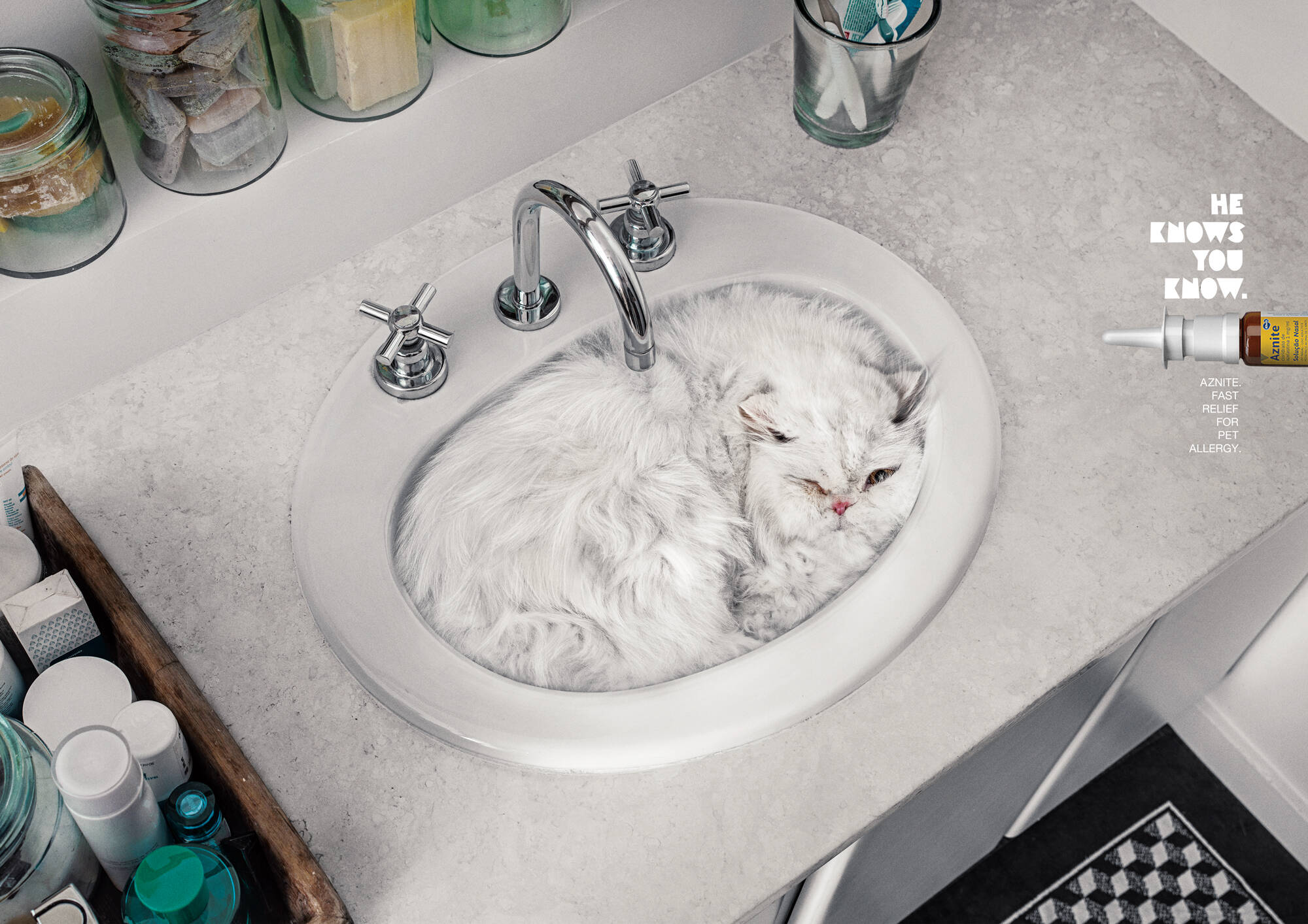 This professional campaign titled 'Cat Hat, Cat Bath' was published in Brazil in June, 2018. It was created for the brand: Aznite, by ad agency: Agência WE. This Print medium campaign contains 2 media assets. It was submitted over 7 years ago.