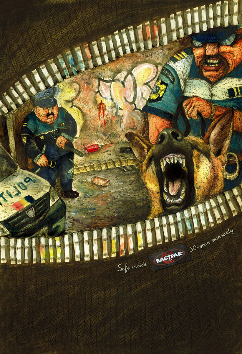 This professional campaign titled 'Caught in the act, Graffiti' was published in Romania in March, 2009. It was created for the brand: Eastpak, by ad agency: Grey. This Print medium campaign is related to the Personal Accessories industry and contains 2 media assets. It was submitted over 16 years ago.
