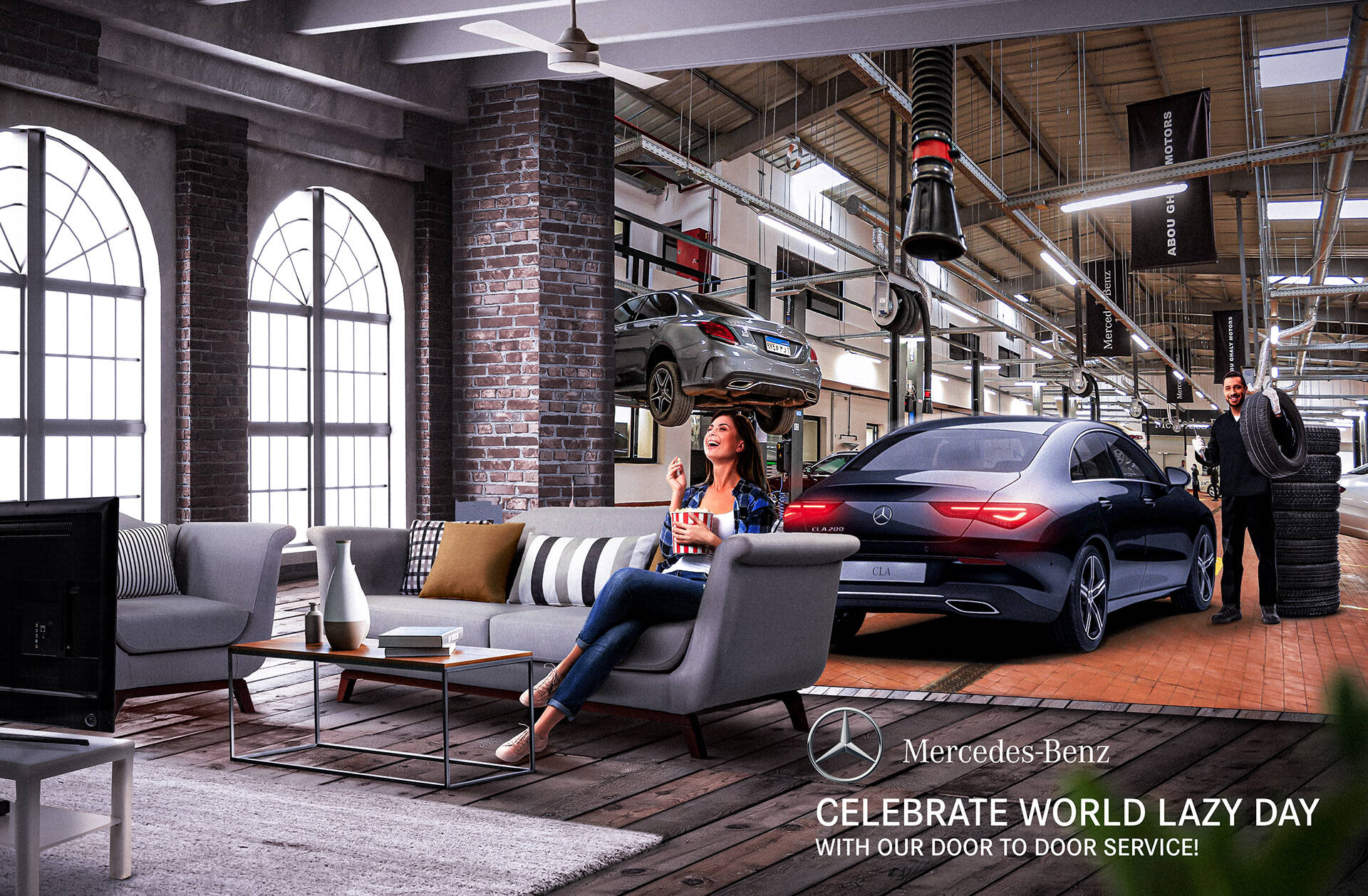 Celebrate world lazy day from the comfort of your home with a free door-to-door service for your Mercedes-Benz at Abou Ghaly Motors.