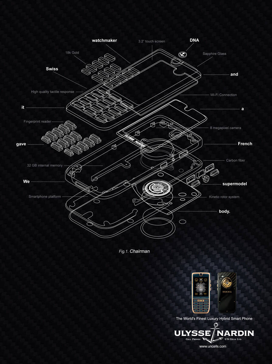 This professional campaign titled 'Chairman' was published in United States in August, 2009. It was created for the brand: Ulysse Nardin, by ad agency: Pumped. This Print medium campaign is related to the Electronics, Technology industry and contains 1 media asset. It was submitted about 16 years ago.