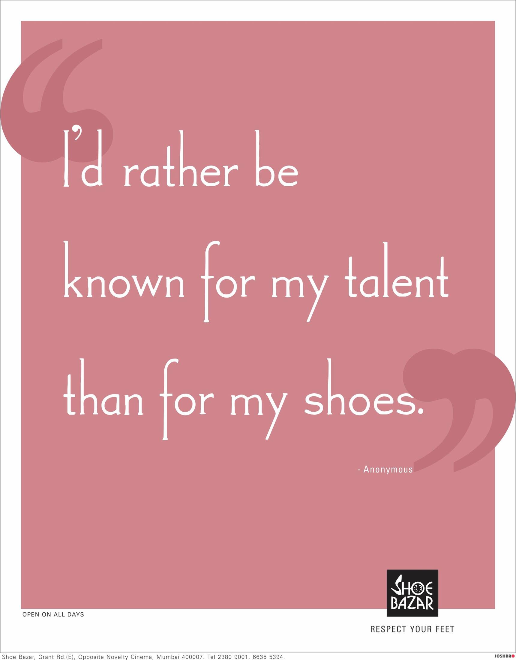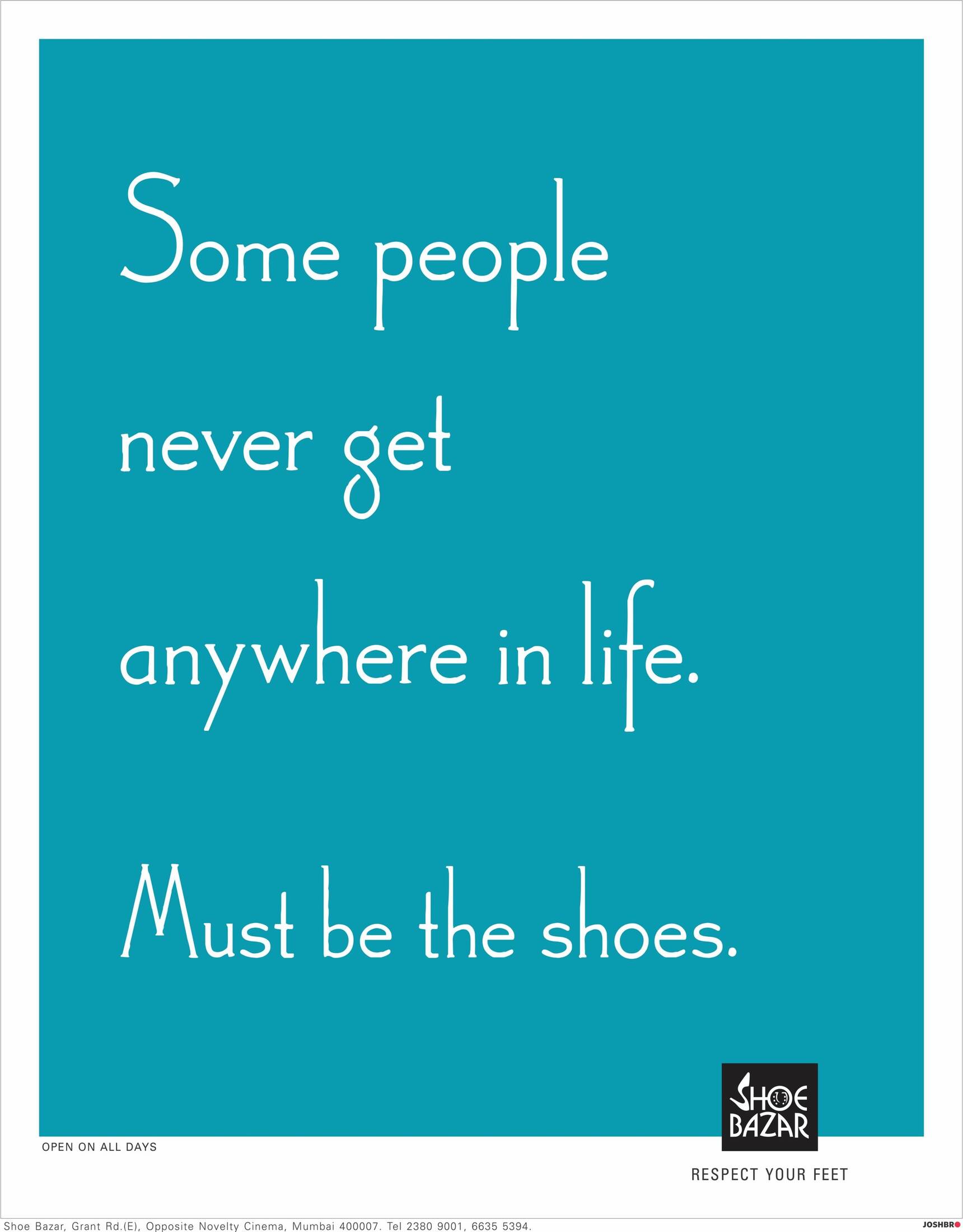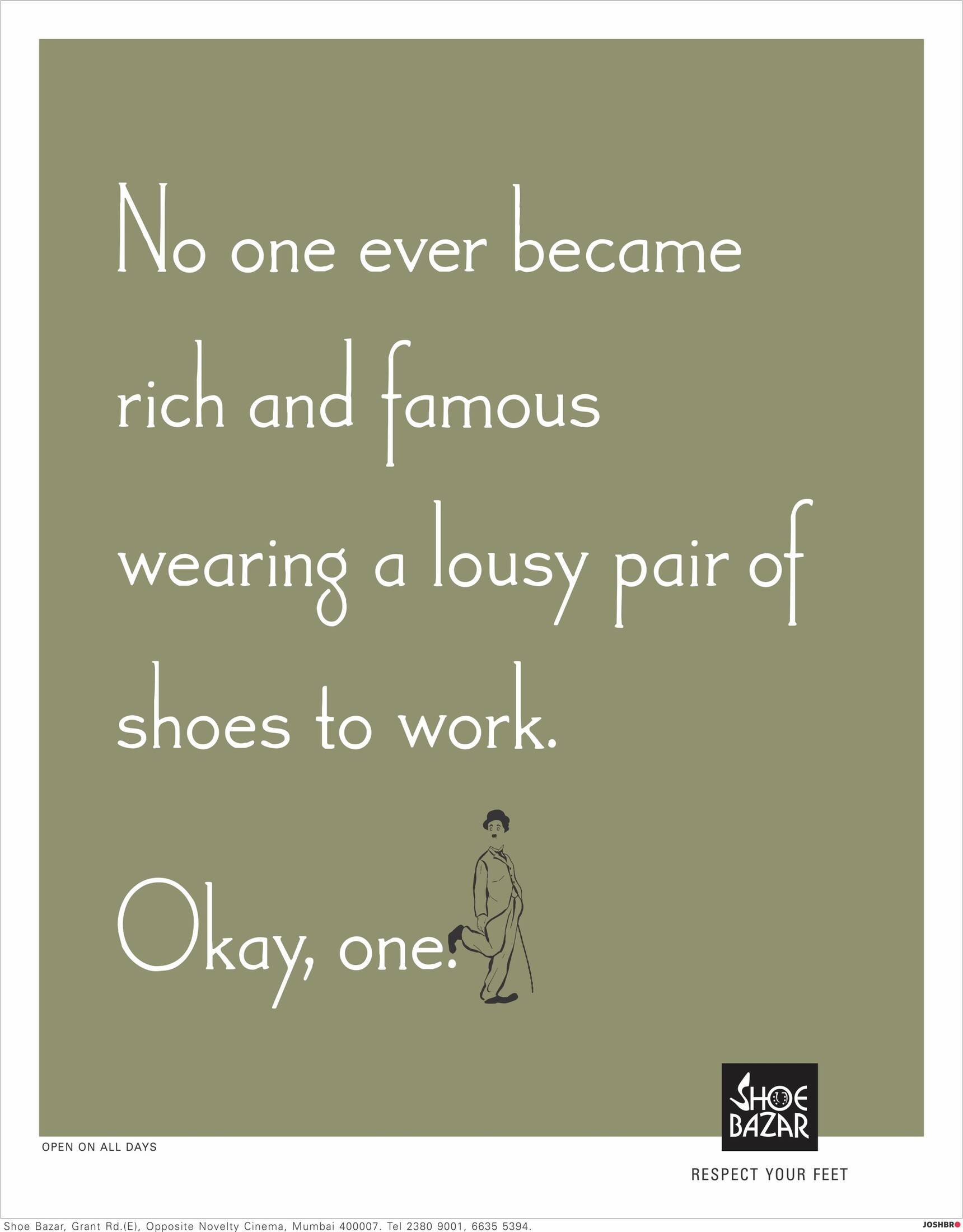 This professional campaign titled 'Chaplin, Never get anywhere, Anonymous' was published in India in March, 2014. It was created for the brand: Shoe Bazar, by ad agency: Joshbro. This Print medium campaign is related to the Retail Services industry and contains 3 media assets. It was submitted over 11 years ago.