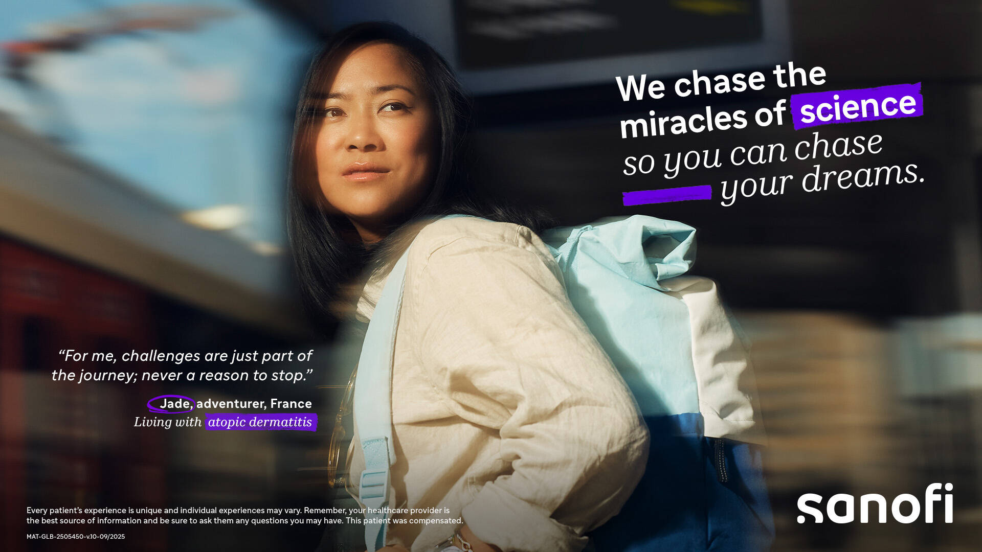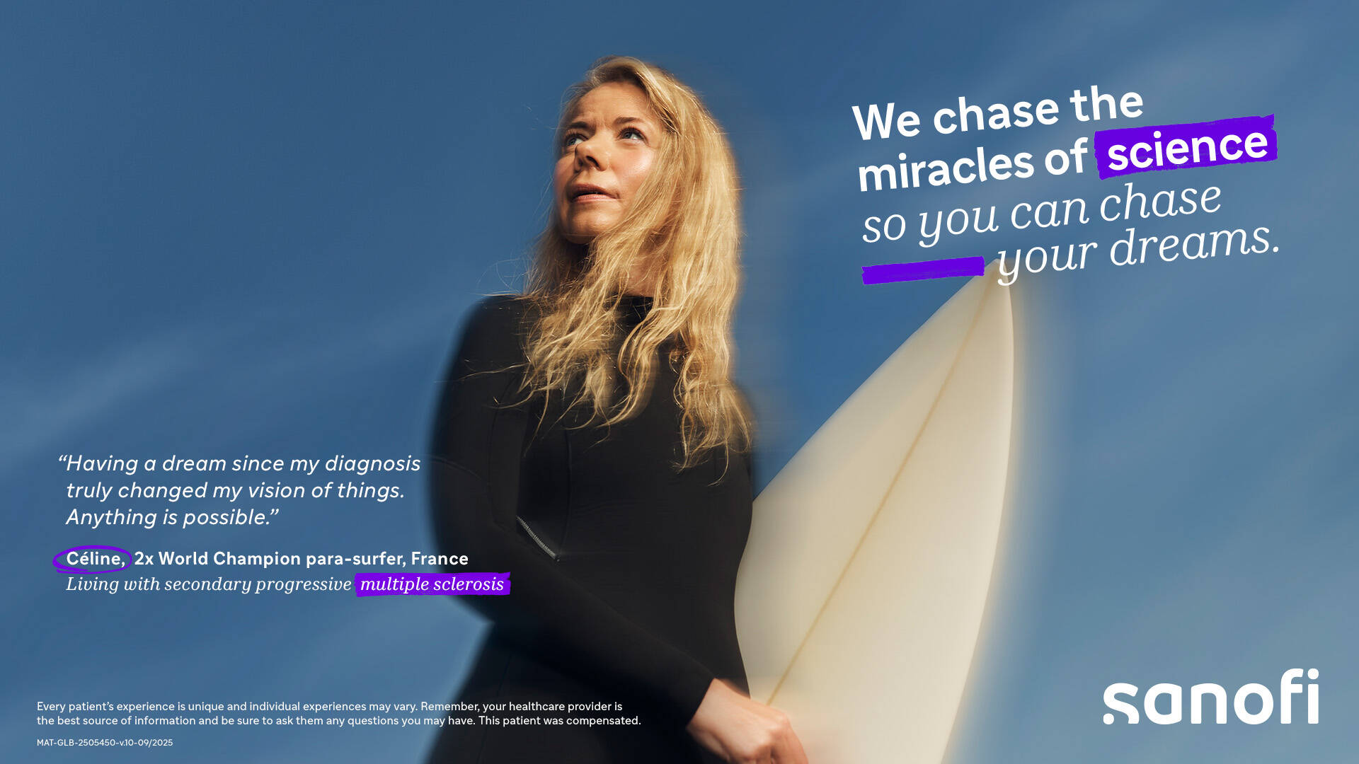 “Chasers” is Sanofi's global integrated campaign built around real patients who refused to let their condition define their limits. A platform that embodies Sanofi’s purpose: chasing the miracles of science, so people can keep chasing their dreams.