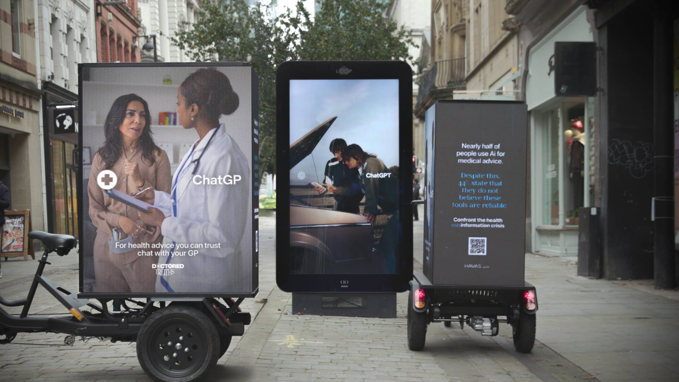 Responding to ChatGPT's campaign promoting AI as a universal answer, we strategically intervened to tackle trust head-on. We 'hijacked' OpenAI ads with a crucial caveat: for trusted health advice, you should always chat to your GP.