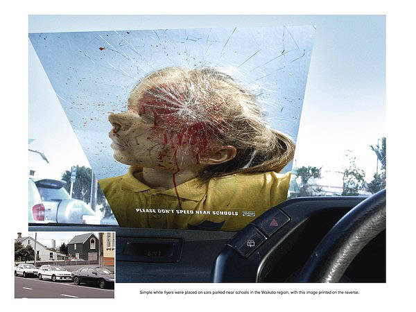 This poster was placed on windshields of parking cars. Very effective and scary.