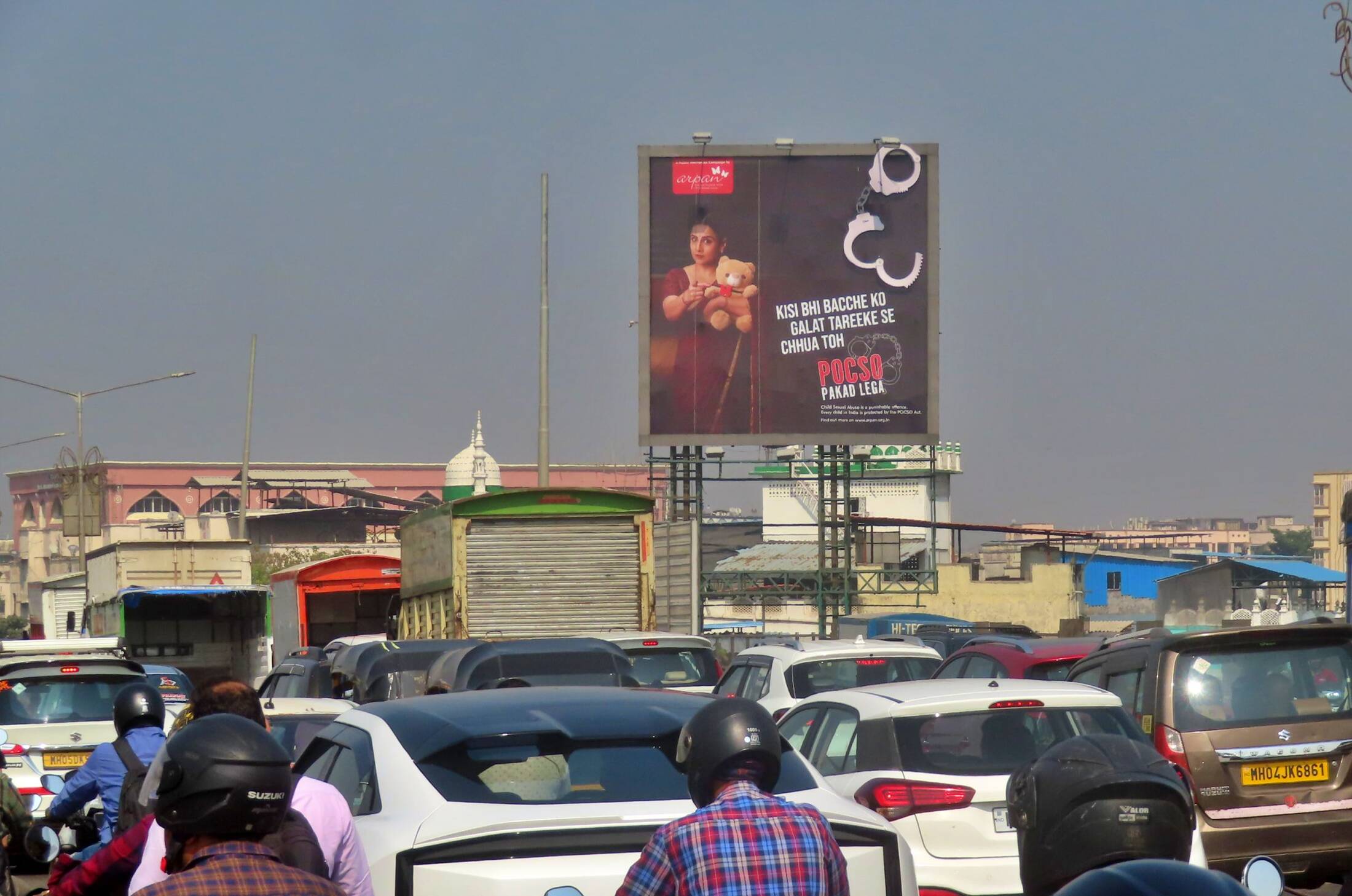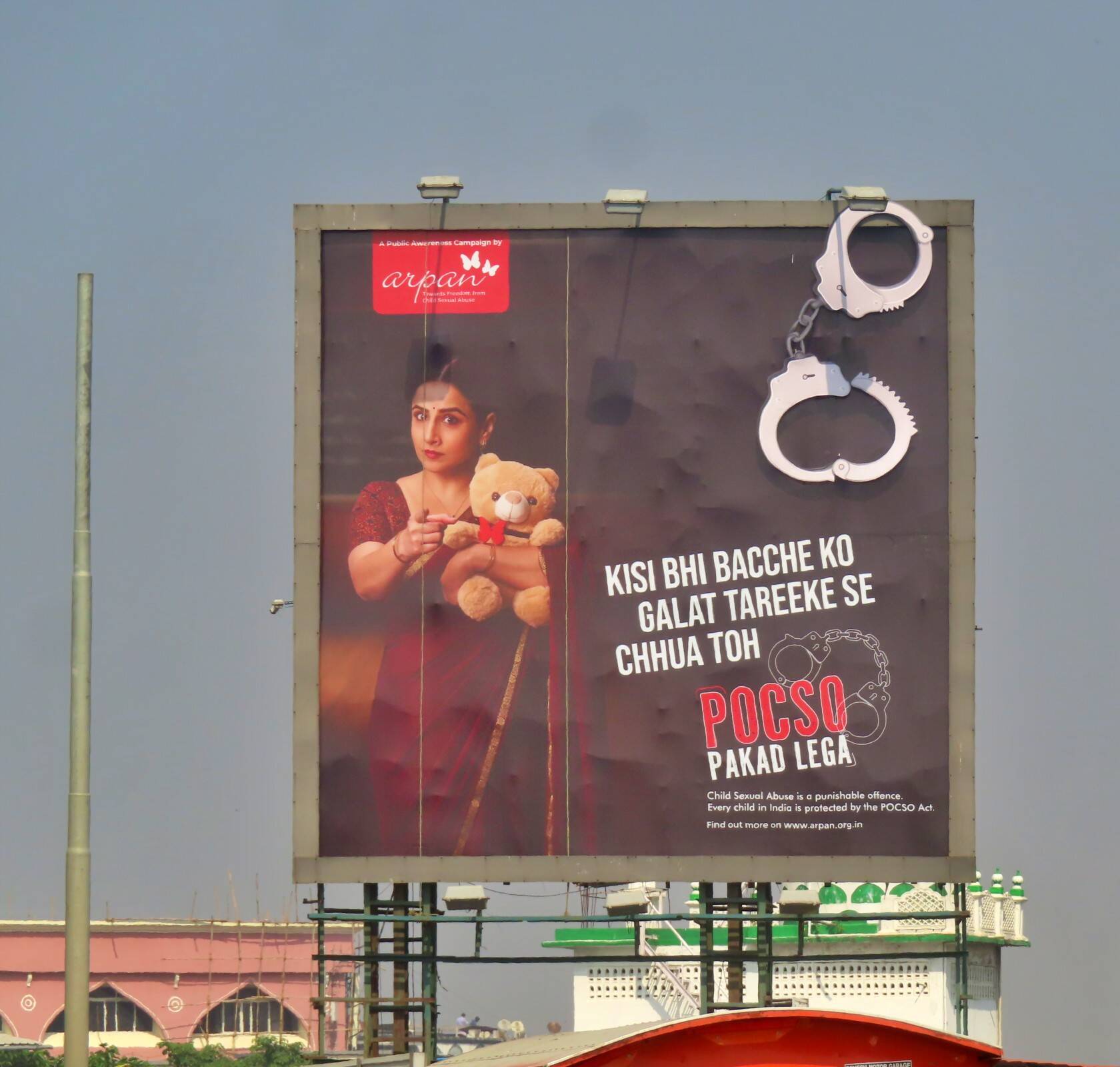 The installation itself carries a bold visual language: a moving oversized handcuff motif, a symbol of accountability under the law, fixed as a large-scale structure on the roadside. The execution involved meticulous fabrication, permissions, and safety compliance to ensure the hoarding did not obstruct traffic flow or distract motorists, while remaining impossible to ignore. One of India’s most acclaimed actors, and Arpan’s goodwill ambassador - Vidya Balan’s image featured prominently across campaign hoardings and digital collateral, lending a strong public visibility and a voice of credibility.