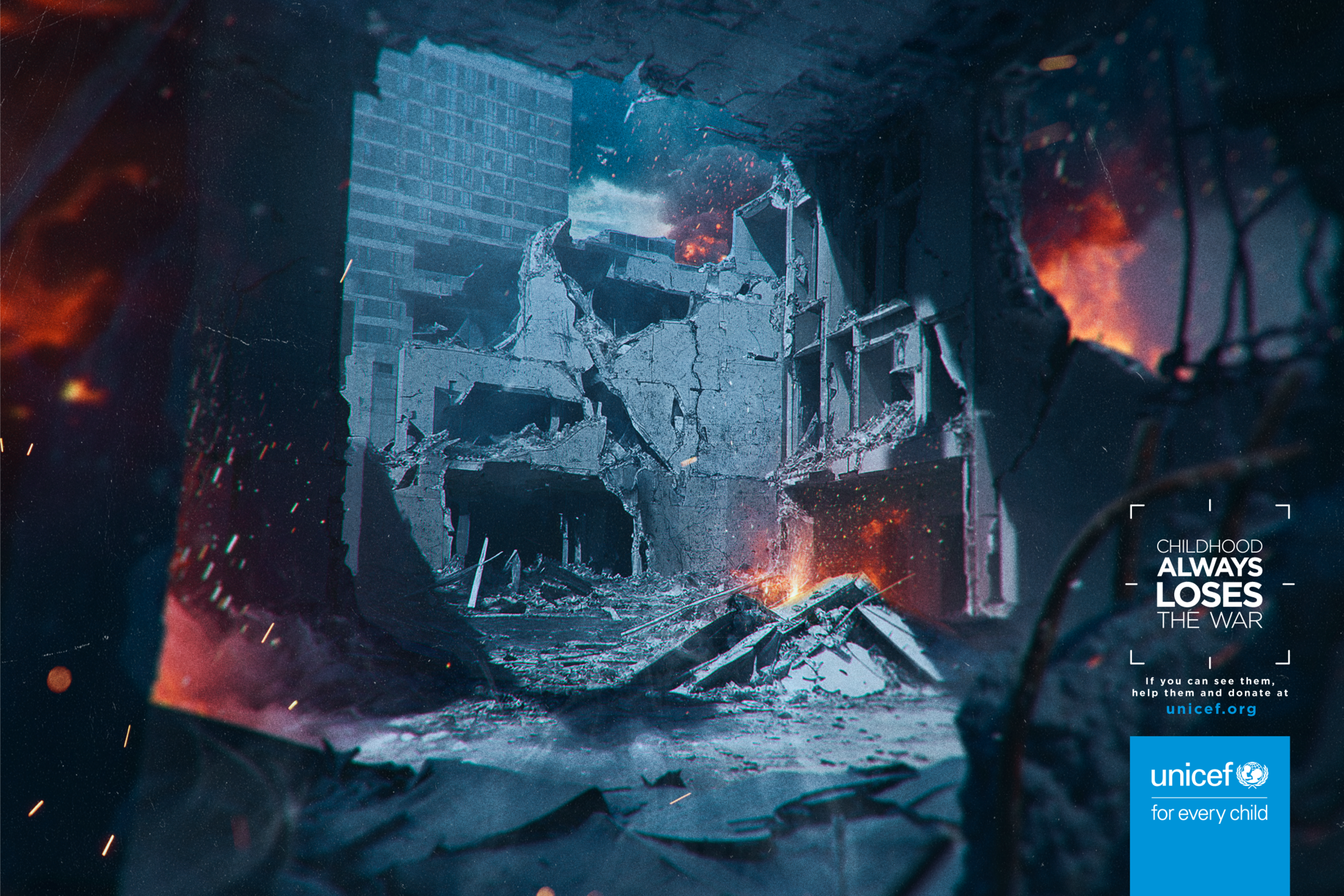 This professional campaign titled 'Childhood always loses the war' was published in Chile in November, 2023. It was created for the brands: Unicef and Unicef Chile, by ad agency: Havas. This Print medium campaign is related to the Public Interest industry and contains 3 media assets. It was submitted almost 2 years ago.