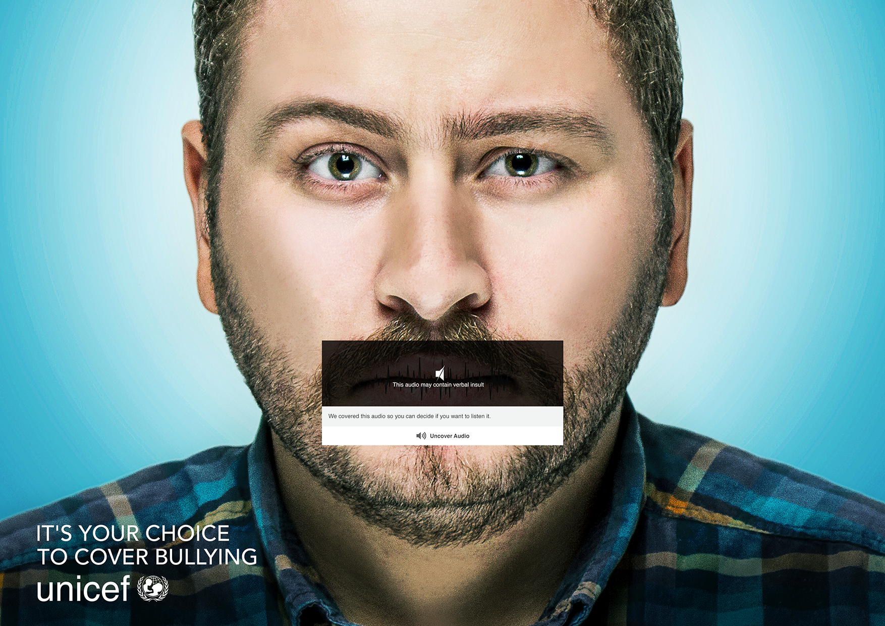 This professional campaign titled 'Choice to Cover Bullying' was published in Egypt in October, 2019. It was created for the brand: Unicef, . This Design medium campaign is related to the Public Interest industry and contains 1 media asset. It was submitted about 6 years ago by Creative art director: Farouk elkady of JUMPPEAK.