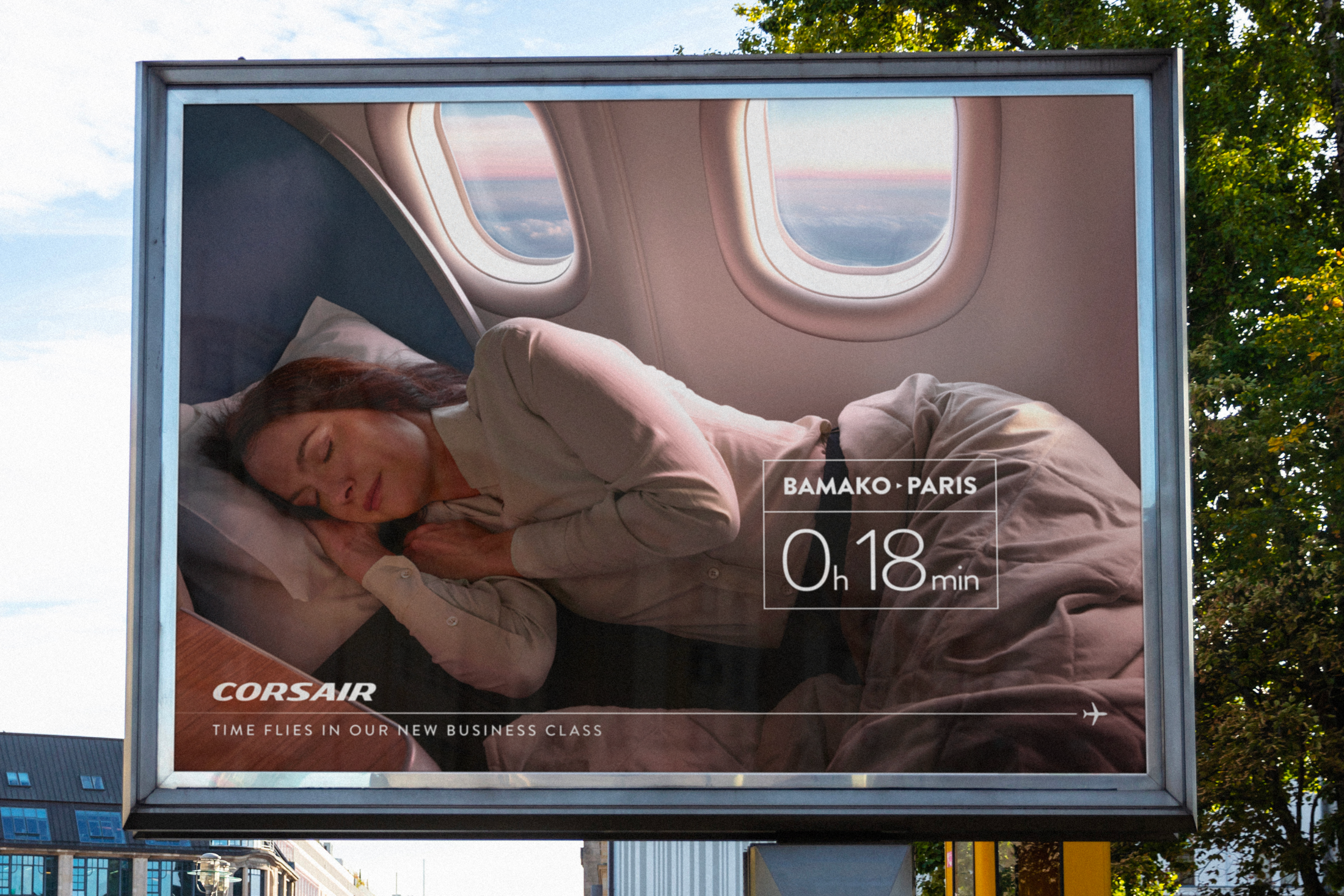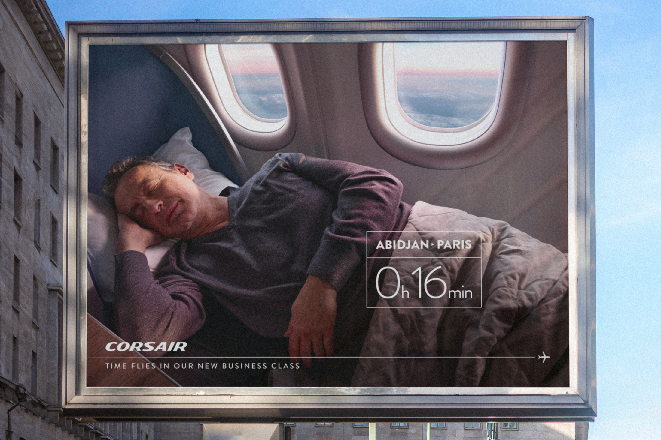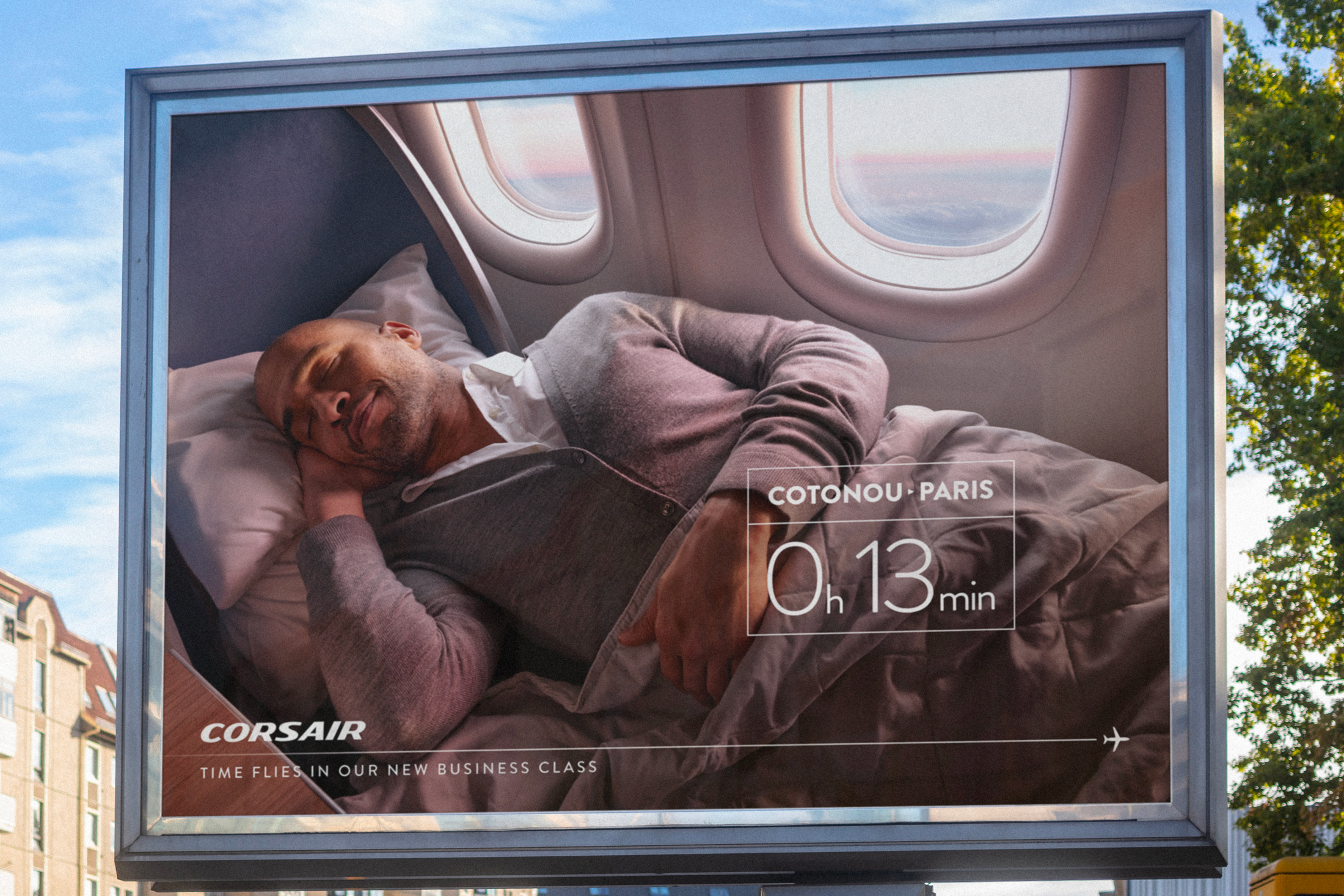 The campaign features three growing business destinations in Africa - Cotonou, Abidjan and Bamako – highlighting the extent of Corsair’s network with both short and long-haul flights for corporate and personal travel. While with some of the airline’s competitors, a flight from Cotonou to Paris might take 7 hours, for Corsair business class passengers arriving well-rested, it will seem to have flown by in only 13 minutes. In the same vein, a flight from Abdijan to Paris (8 hours) will go by in 16 minutes, and from Bamako (8+ hours) passengers will (seemingly) arrive in just 18 min.