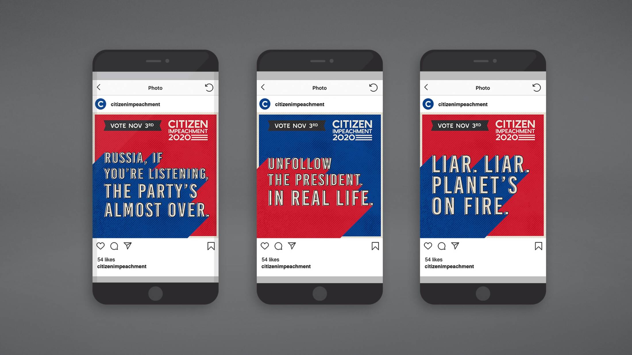 This professional campaign titled 'Citizen Impeachment 2020' was published in United States in February, 2020. It was created for the brand: Cactus, by ad agency: Cactus. This Integrated medium campaign is related to the Agency Self-Promo and Public Interest industries and contains 6 media assets. It was submitted almost 6 years ago.