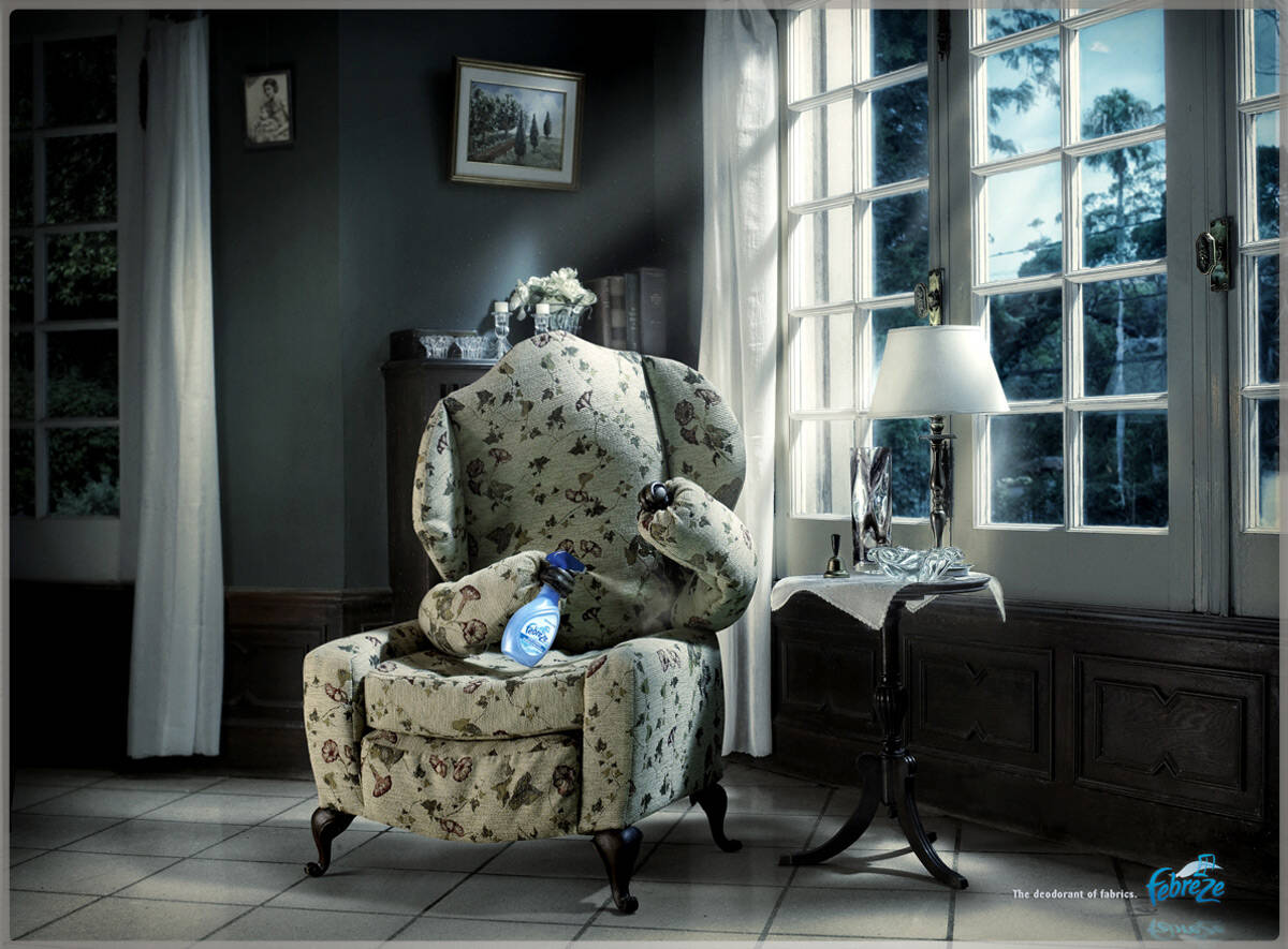 Febreze is a fabric refresher that eliminates odors. It works like body deodorant, but for furniture.
