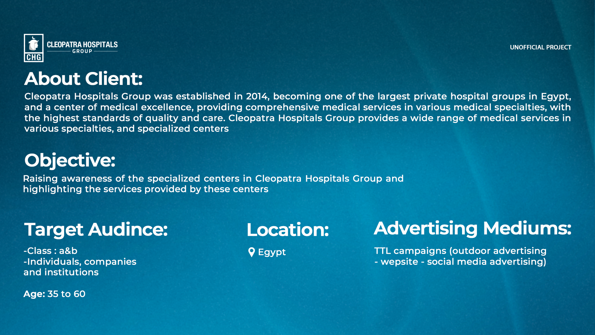Unofficial campaign continued with a deep analysis of the market and the target audience for Cleopatra Hospitals. Through this analysis, a comprehensive marketing strategy has been developed commensurate with the needs of customers, which enabled me to convert ideas into visual designs that reflect their vision accurately