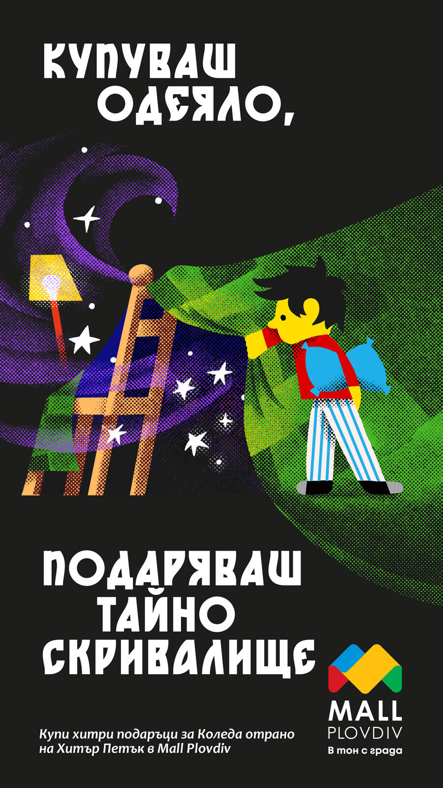 Mall Plovdiv, with its long-standing platform “In tune with the city”, wanted Black Friday to feel different — not just another weekend of discounts. For the third year in a row, the challenge was to reinvent Black Friday into something meaningful, local, and unmistakably Plovdiv. The answer was to tap into the city’s clever identity and create a campaign that turned every purchase into “two for the price of one” — not as a sales mechanic, but as a cultural one.