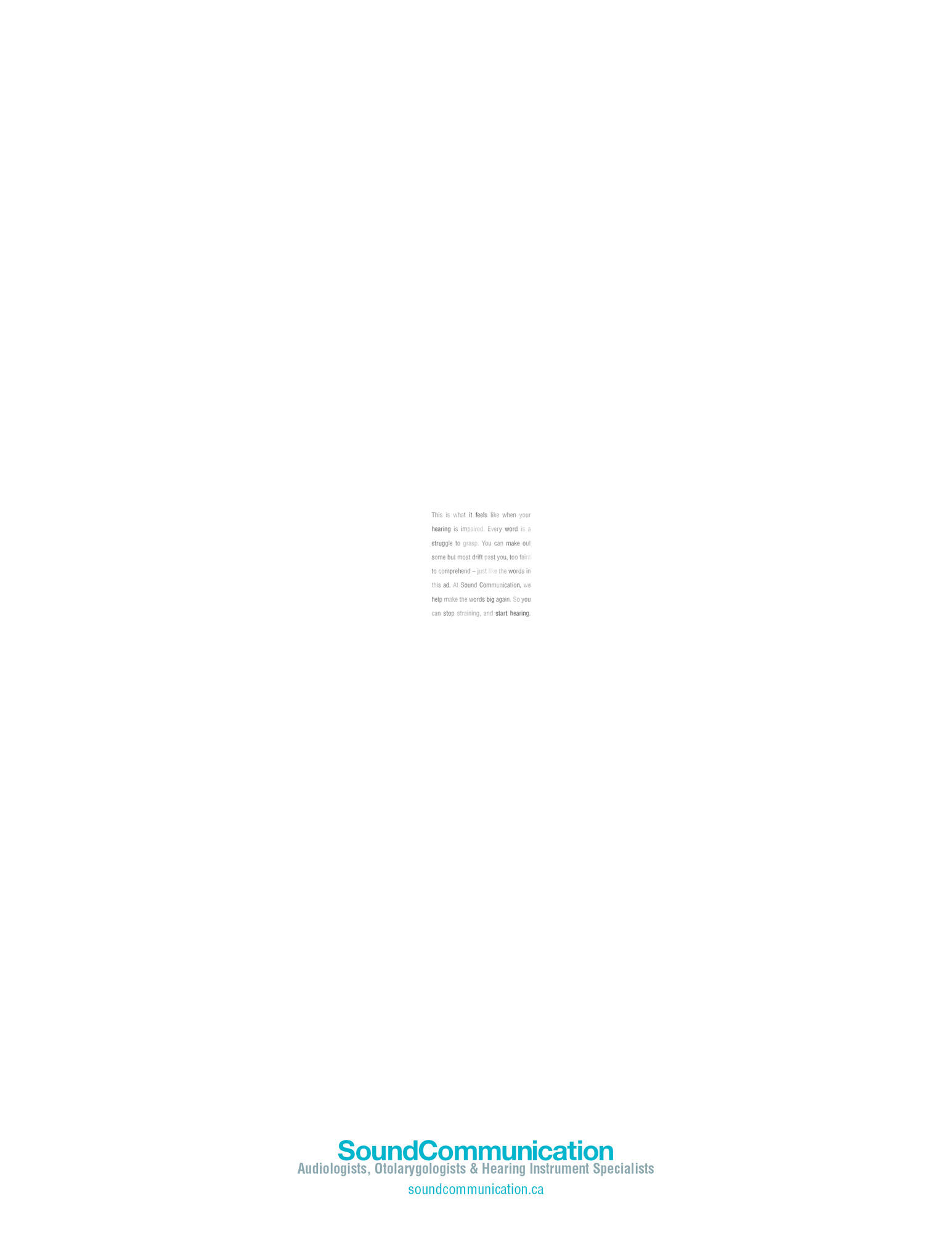 This professional campaign titled 'Close-up' was published in Canada in November, 2012. It was created for the brand: Sound Communication, by ad agency: Red Lion. This Print medium campaign is related to the Professional Services industry and contains 2 media assets. It was submitted about 13 years ago.