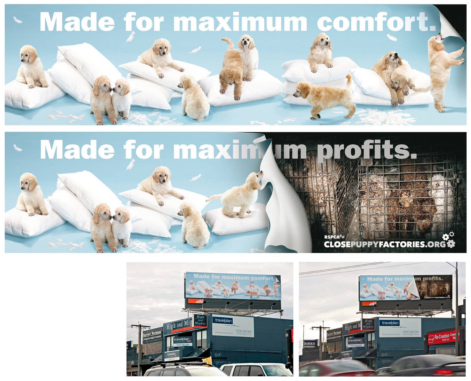This professional campaign titled 'closepuppyfactories.org' was published in Australia in July, 2010. It was created for the brand: RSPCA, by ad agency: M&C Saatchi. This OOH Outdoor medium campaign is related to the Public Interest industry and contains 1 media asset. It was submitted over 15 years ago.