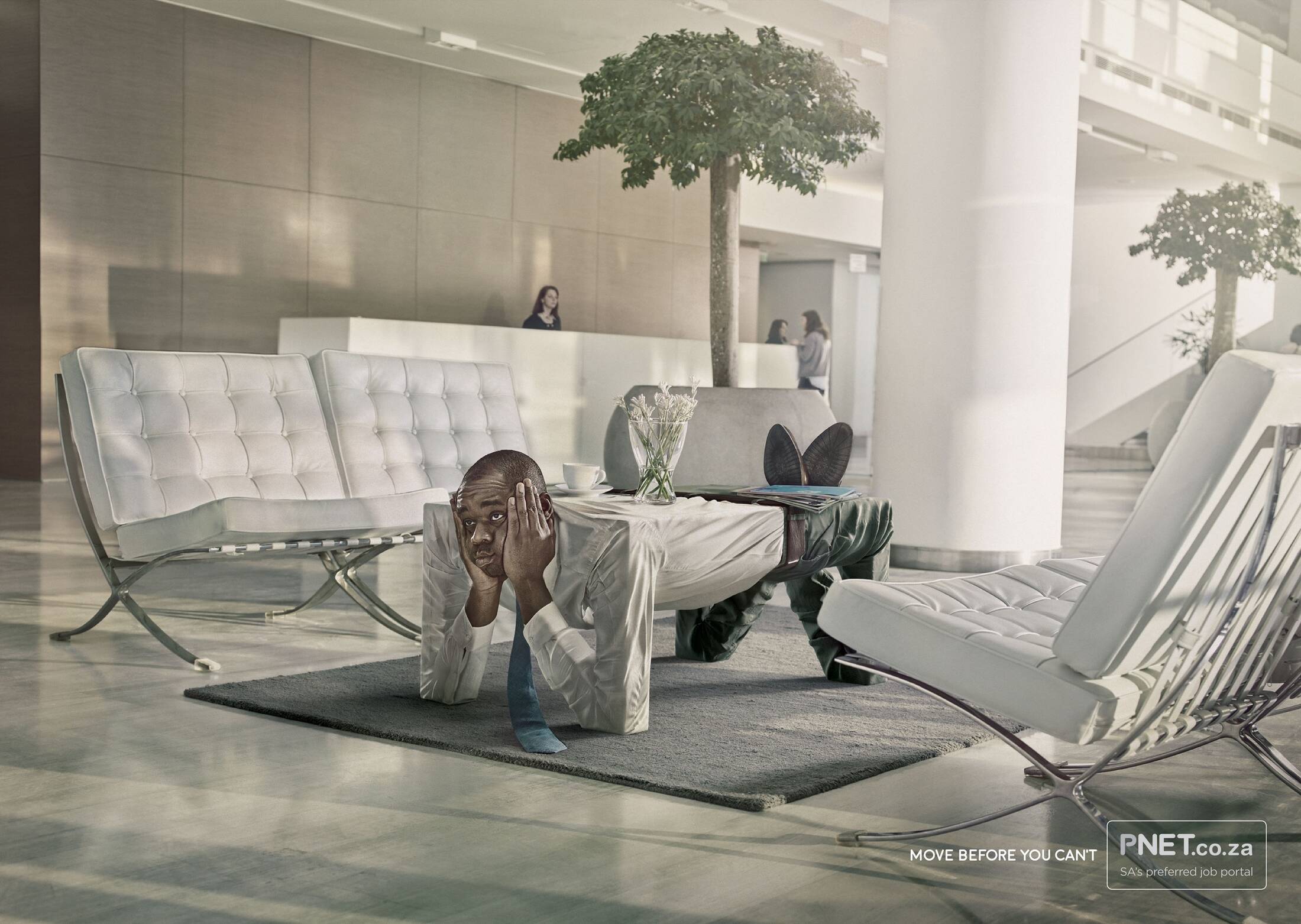 This professional campaign titled 'Coat hanger, Table, Chair' was published in South Africa in May, 2016. It was created for the brand: PNet, by ad agency: Joe Public. This Print medium campaign is related to the Professional Services industry and contains 3 media assets. It was submitted over 9 years ago.