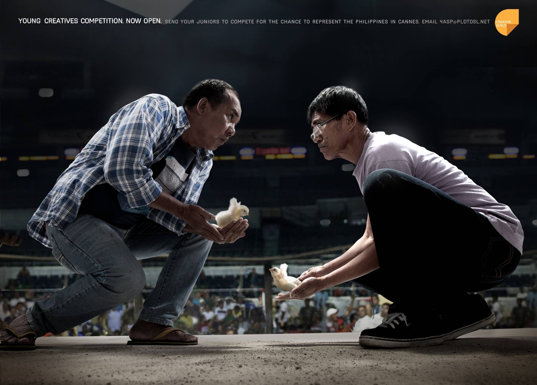 This professional campaign titled 'Cockfight' was published in Philippines in March, 2013. It was created for the brand: Creative Guild of the Philippines, by ad agency: Y&R. This Print medium campaign is related to the Professional Services industry and contains 1 media asset. It was submitted over 12 years ago.