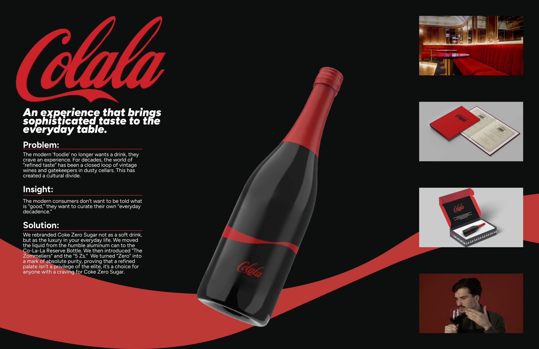 We rebranded Coke Zero Sugar not as a soft drink, but as the luxury in your everyday life. We moved the liquid from the humble aluminum can to the Co-La-La Reserve Bottle. We then introduced “The Zommeliers” and the “5 Zs.” We turned "Zero" into a mark of absolute purity, proving that a refined palate isn't a privilege of the elite, it’s a choice for anyone with a craving for Coke Zero Sugar.
