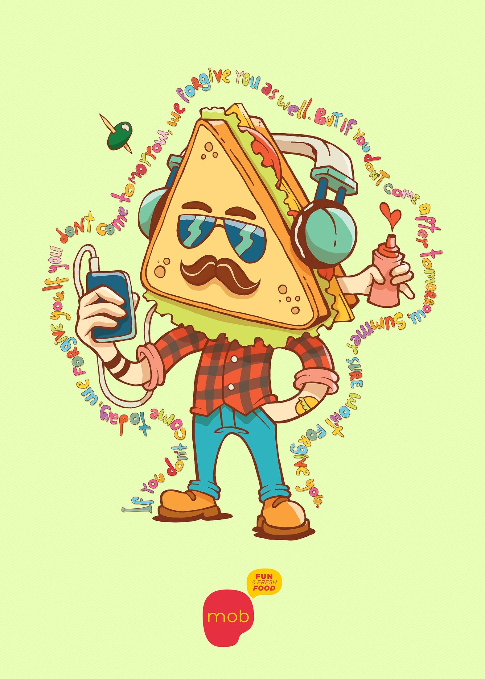 This professional campaign titled 'Colorful, Forgive, Coffee, Food, Sushi chef, Confession' was published in Brazil in August, 2014. It was created for the brand: MOB Fun & Fresh Food, by ad agency: CCZ. This Print medium campaign is related to the Food industry and contains 6 media assets. It was submitted about 11 years ago.