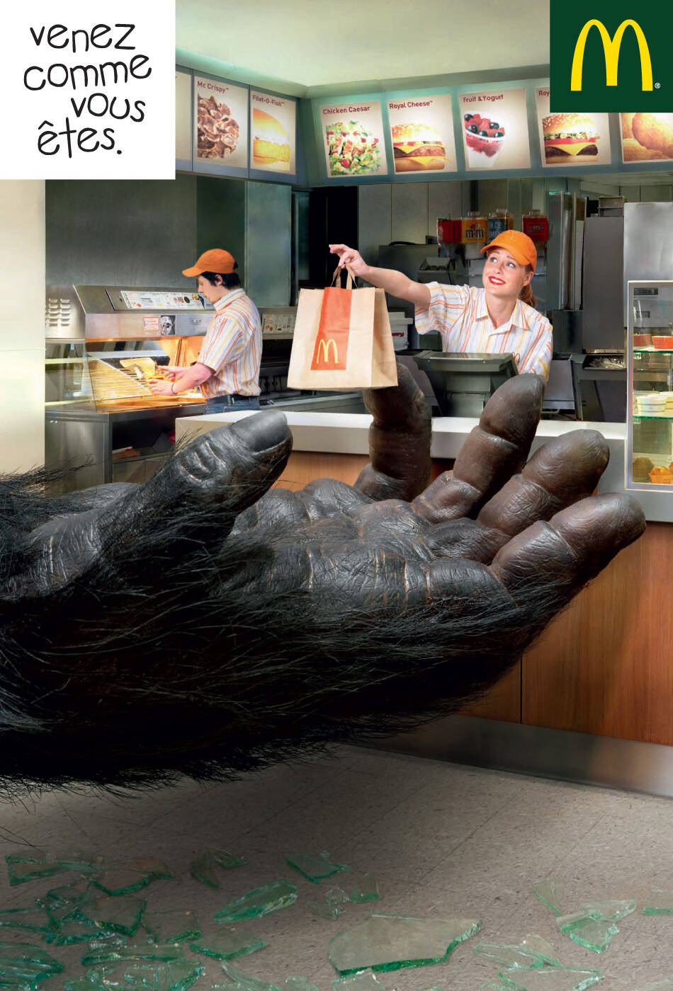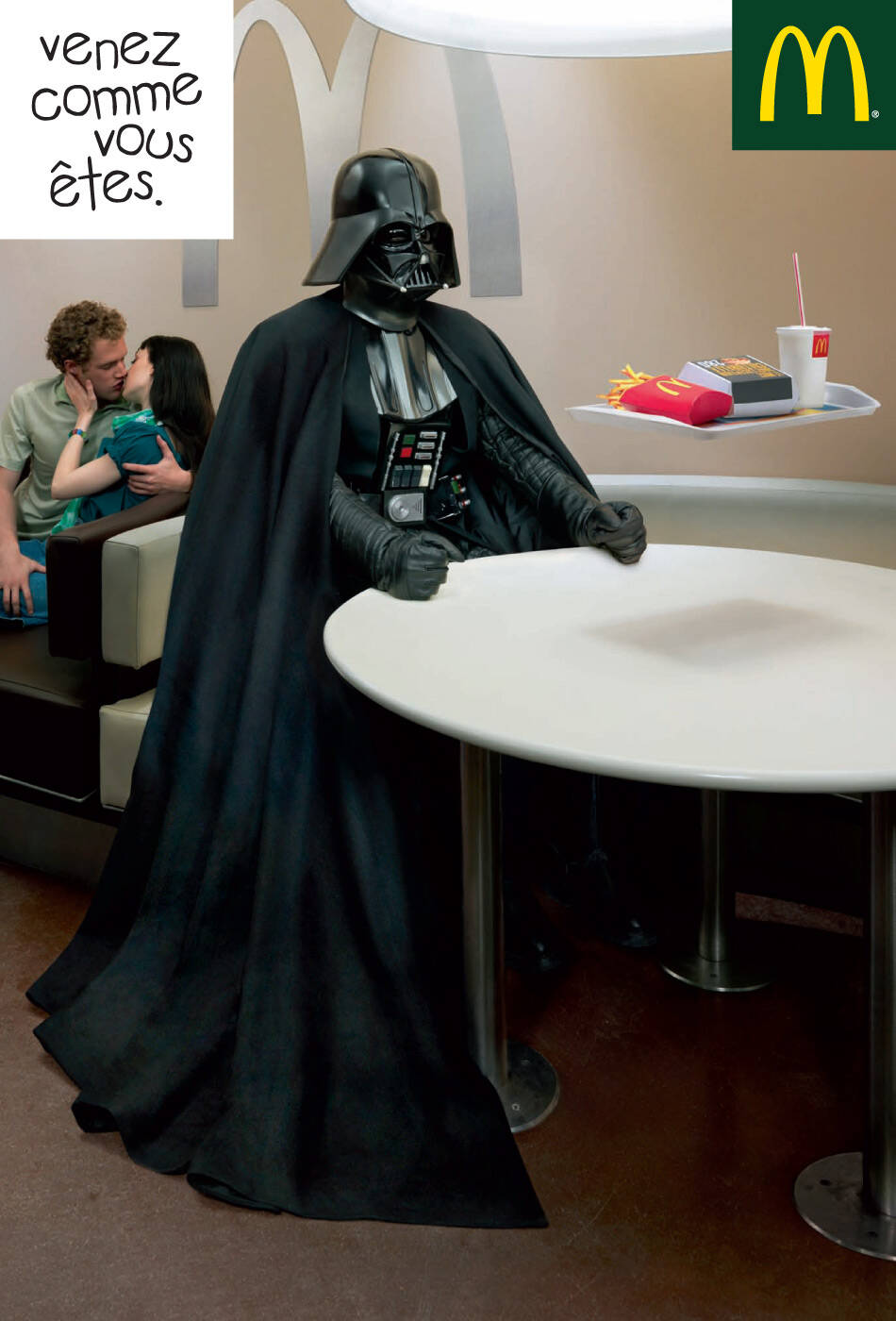 This professional campaign titled 'Come as you are, Darth Vader, Come as you are, King Kong' was published in France in February, 2010. It was created for the brand: McDonald's, by ad agency: Euro RSCG. This Print medium campaign is related to the Food industry and contains 2 media assets. It was submitted almost 16 years ago.