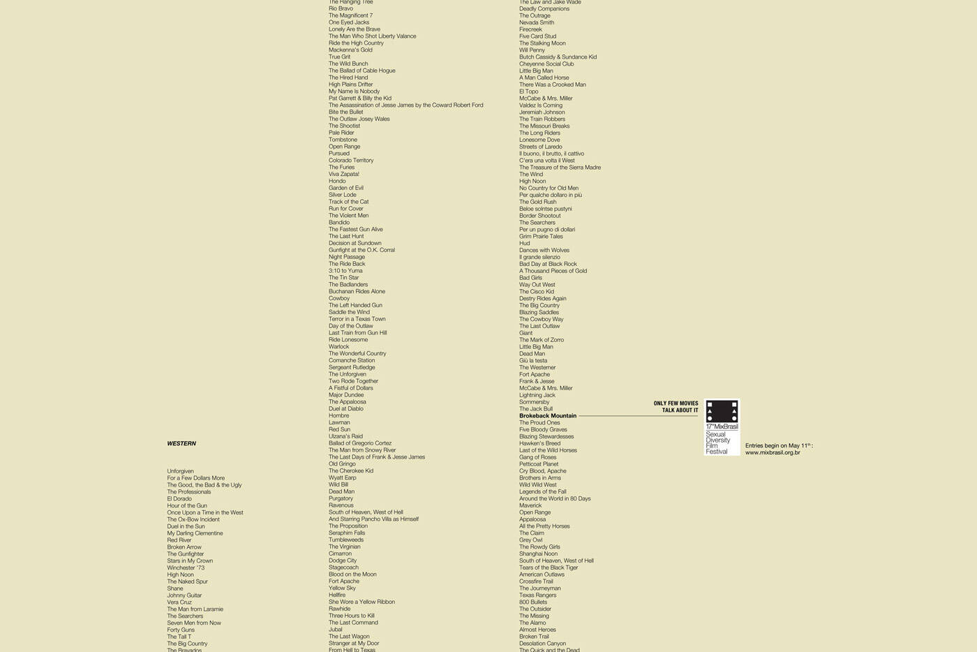 This professional campaign titled 'Comedy, Western, Drama' was published in Brazil in June, 2009. It was created for the brand: Mix Brasil, by ad agency: BBH. This Print medium campaign is related to the Recreation, Leisure industry and contains 3 media assets. It was submitted over 16 years ago.