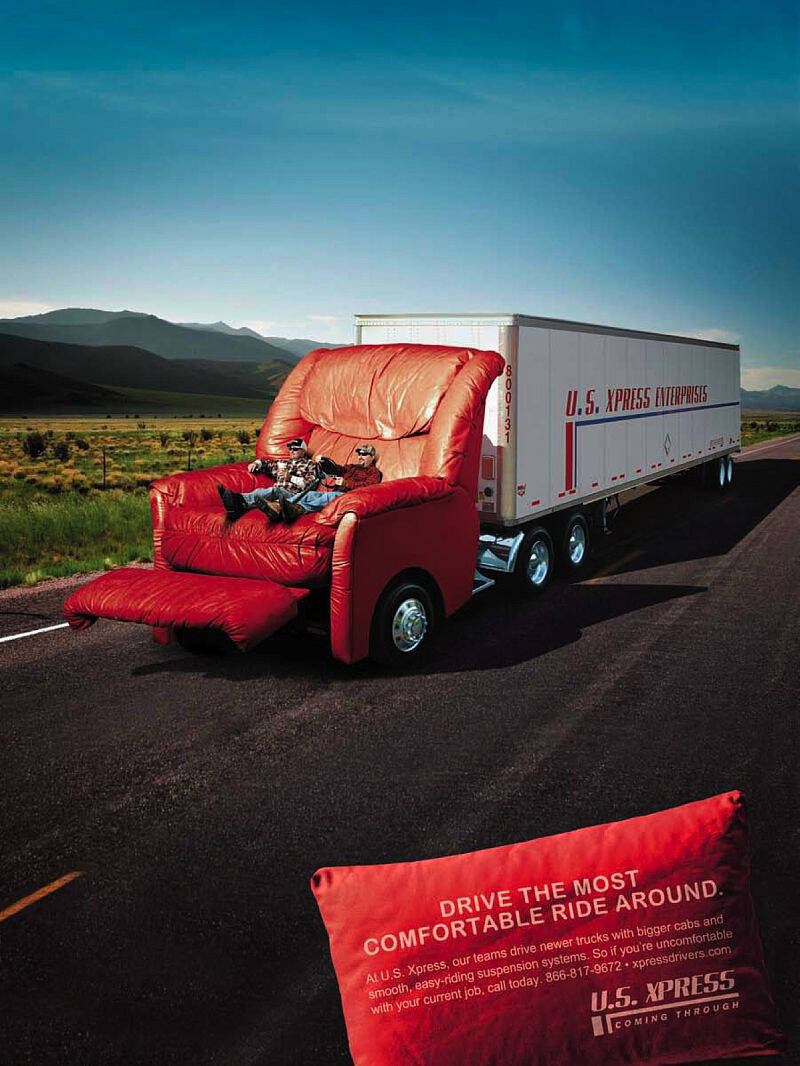 This professional campaign titled 'Comfort, Ride, Support, Miles' was published in United States in September, 2008. It was created for the brand: U.S. Xpress, by ad agency: The Johnson Group. This Print medium campaign is related to the Professional Services industry and contains 4 media assets. It was submitted almost 17 years ago.