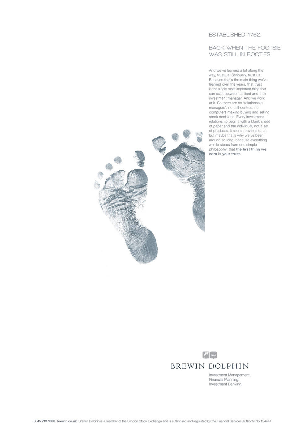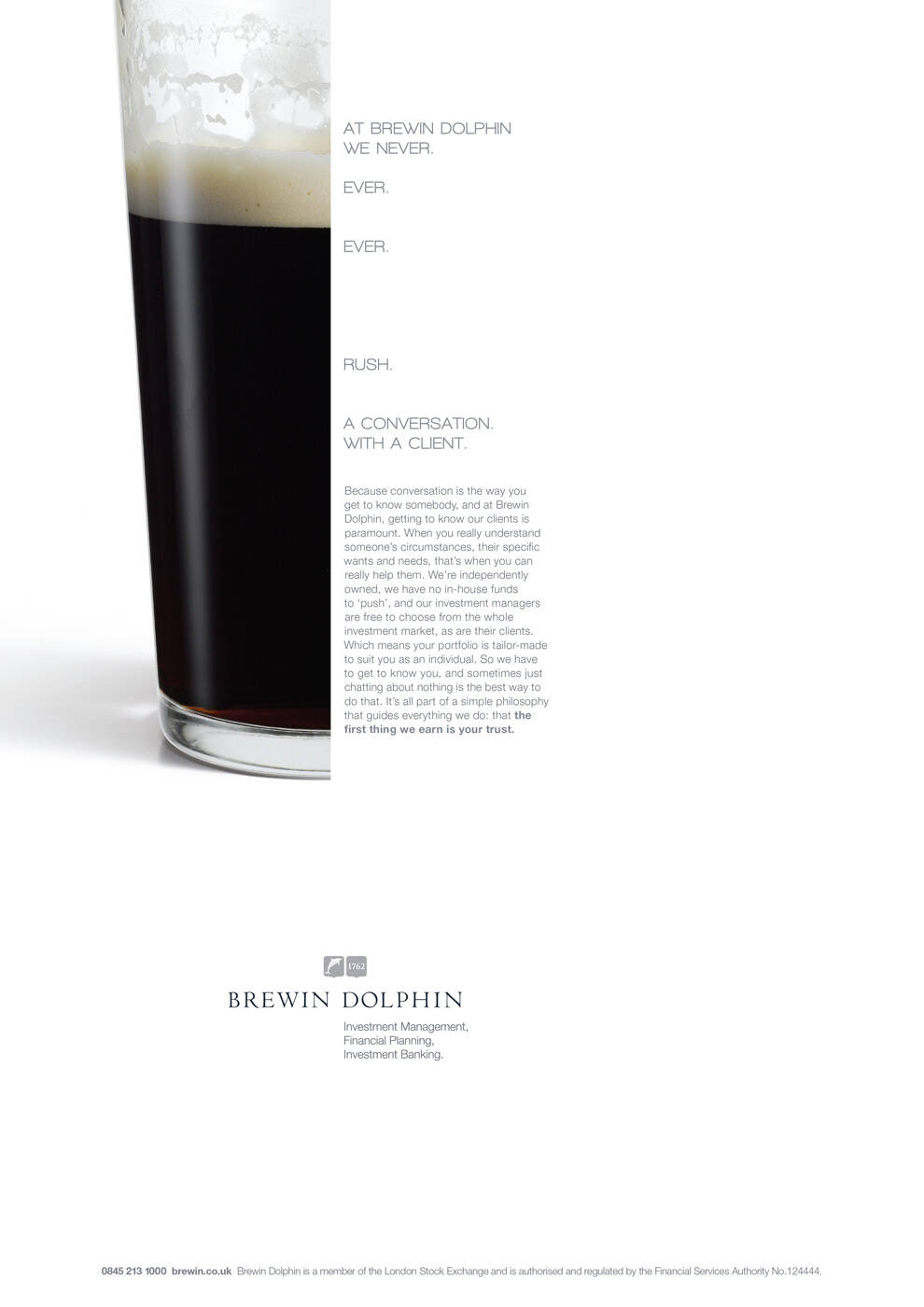 Despite being the largest independent private client investment management company in the UK, Brewin Dolphin has never advertised before. This campaign ran in UK national newspapers throughout November.