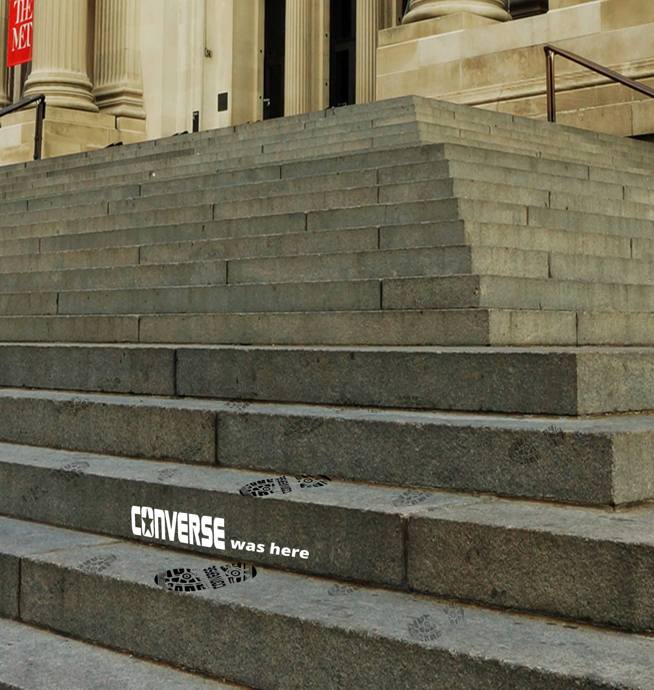 One of the key benefits of Converse is the fact that it can be worn anywhere by anyone. It has no restrictions , demographic , situational or otherwise. “Converse was here” is an ambient campaign that focuses on this very aspect. By placing Converse footprints in key places that are visited by people on a regular basis such as the MET, office areas and the subway; Converse would show that they are the “one shoe fits all” brand.