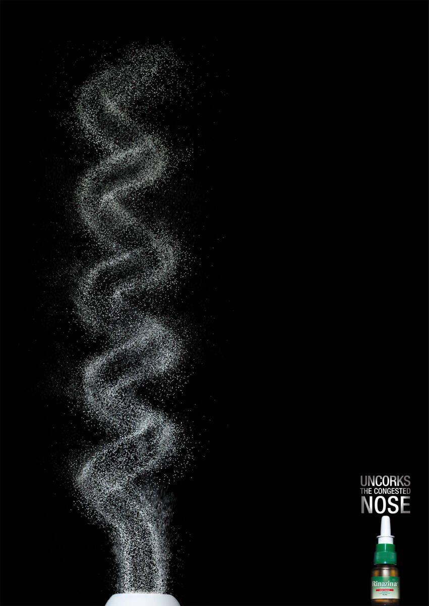 This professional campaign titled 'Corkscrew, Tornado' was published in Italy in February, 2009. It was created for the brand: Rinazina, by ad agency: Grey. This Print medium campaign is related to the Pharmaceutical industry and contains 2 media assets. It was submitted over 16 years ago.