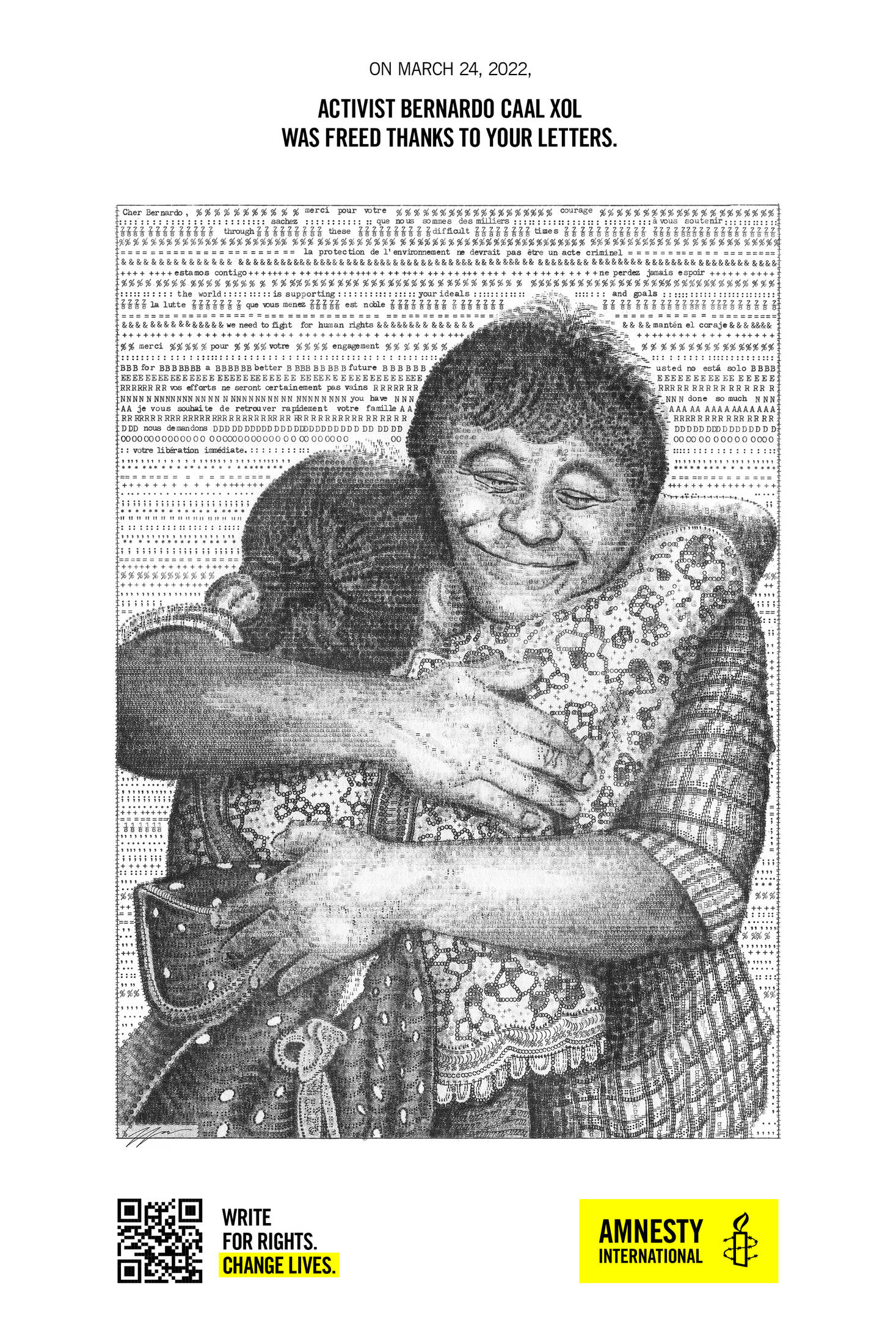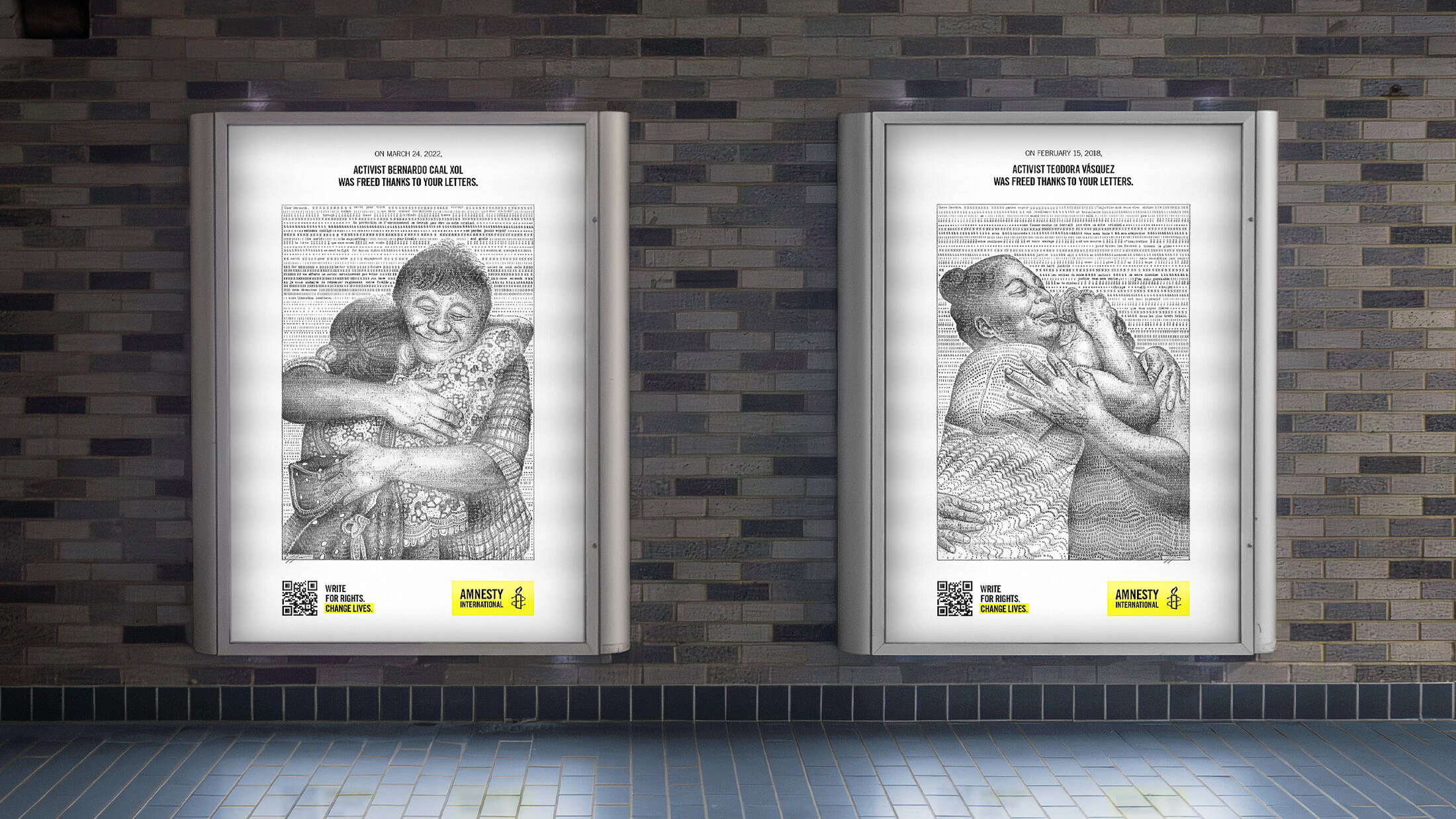 This year’s campaign puts a spotlight on that real-world impact. Cossette and Amnesty are sharing the powerful stories of people who regained their freedom thanks to past letter-writing efforts. Using striking visuals, the campaign recreates the emotional moments of their release through portraits illustrated entirely with typewriter characters. Each image, crafted by UK-based artist James Cook, is infused with authentic excerpts from the very letters that helped change their fate.
