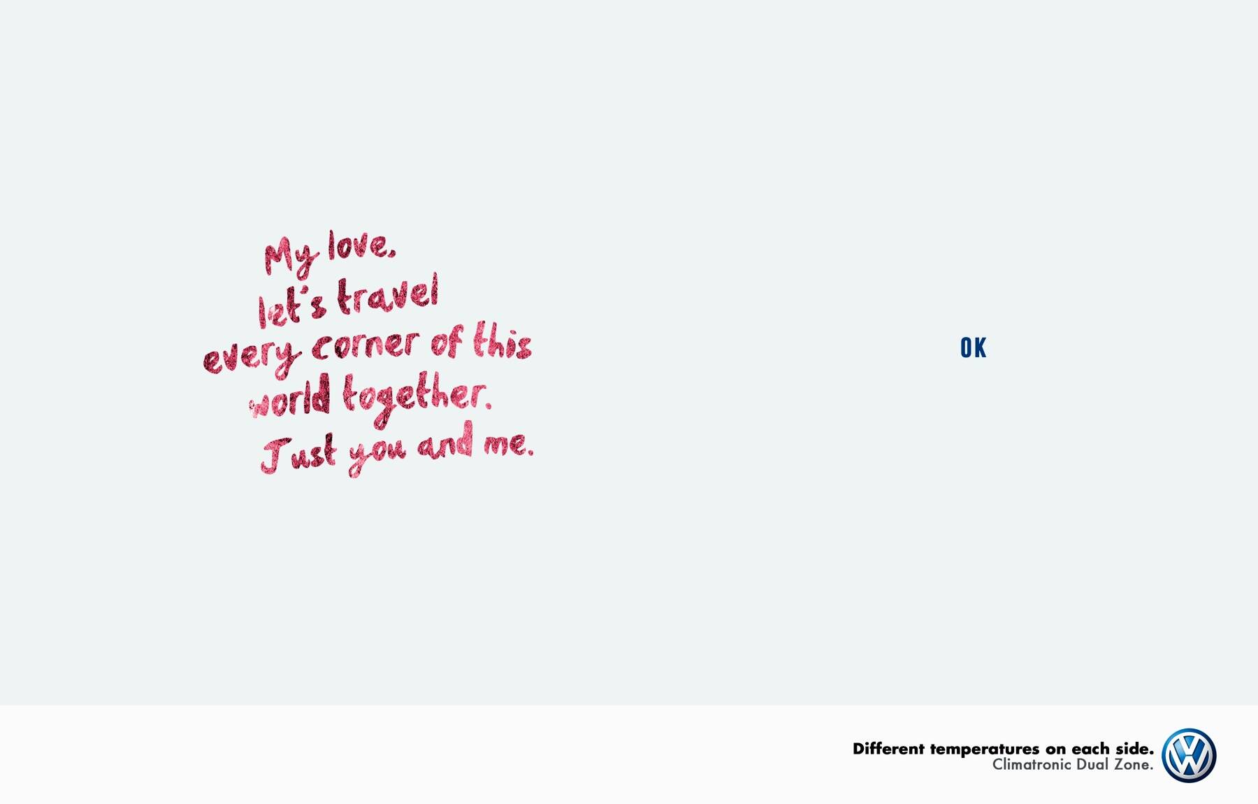 This student campaign titled 'Couple' was published in Argentina in November, 2013. It was created for the brand: Volkswagen, by ad school: Brother Ad School. This Print medium campaign is related to the Automotive and Personal Transportation industry and contains 3 media assets. It was submitted about 12 years ago.