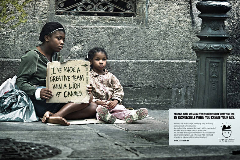 Homeless and disable people are helping many advertising professionals to achieve success. Not mentioning the ones wounded in wars and the ones infected with AIDS, who are always giving a helping hand. But, isn’t it the other way around? Next time you have a brilliant idea for a starving nation, war refugees or AIDS victims ad, remember to ask yourself this: brilliant for whom?