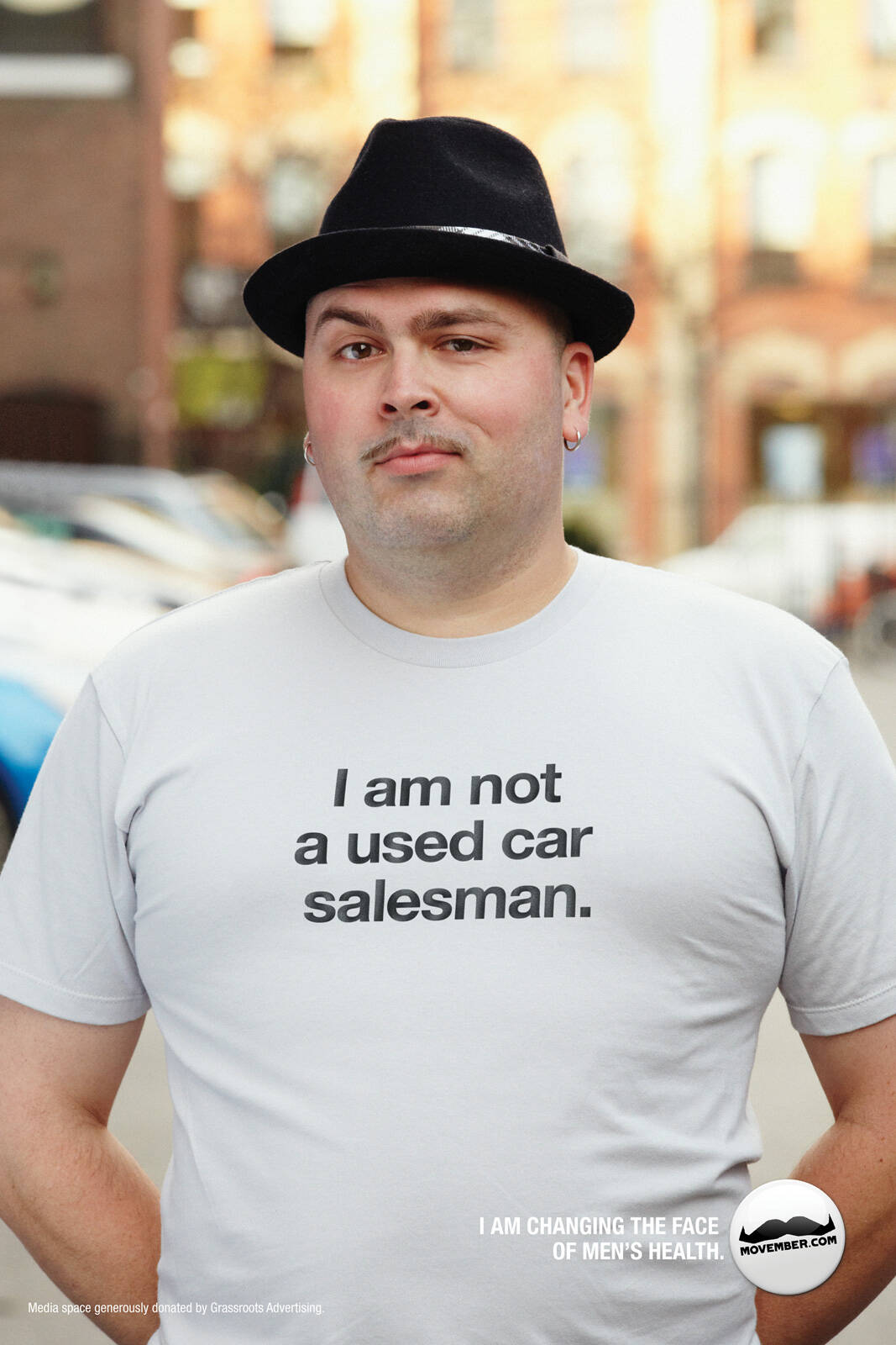 This professional campaign titled 'Creepy, Fireman, Car salesman, Porn star, 70's, Cop' was published in Canada in November, 2011. It was created for the brand: Movember, by ad agency: Bensimon Byrne. This Print medium campaign is related to the Public Interest industry and contains 6 media assets. It was submitted almost 14 years ago.
