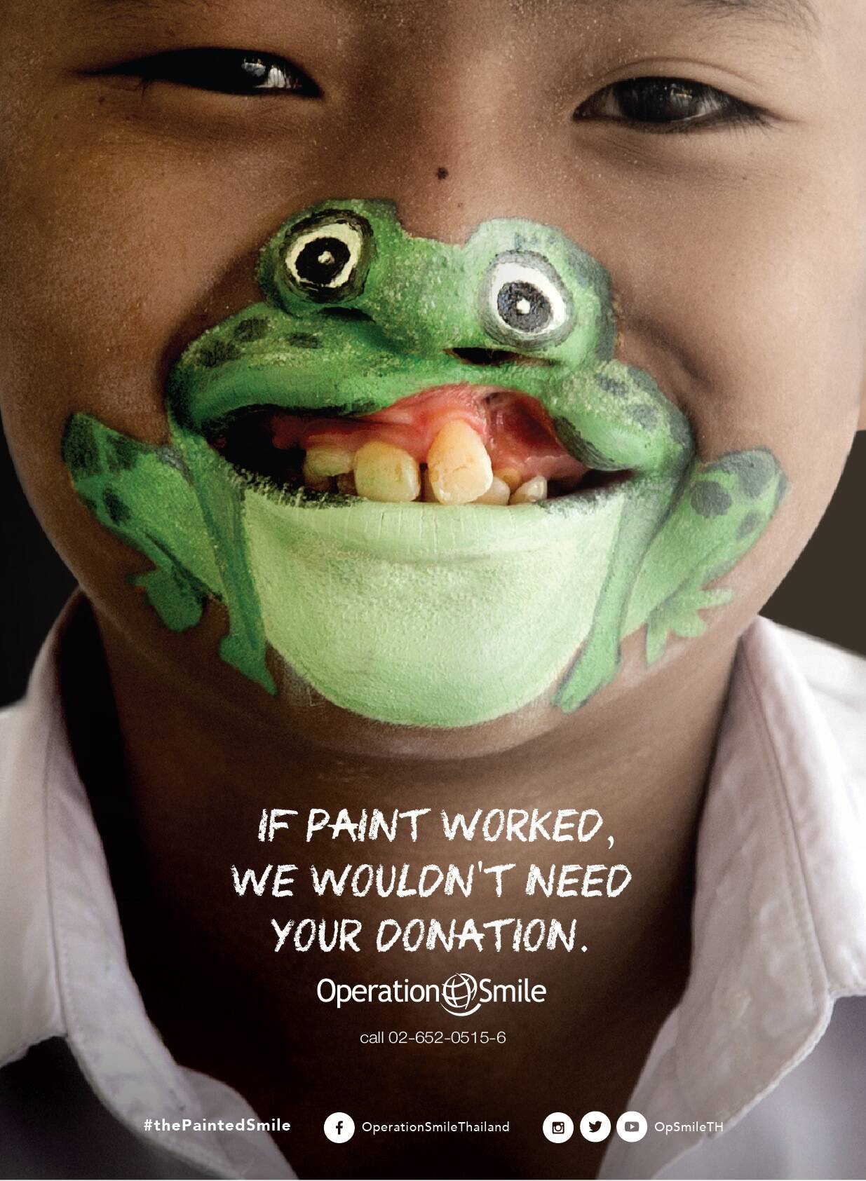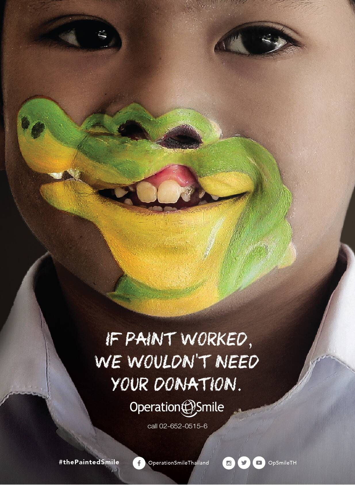This professional campaign titled 'Crocodile, Princess, Frog' was published in Thailand in July, 2015. It was created for the brand: Operation Smile, by ad agency: BBDO. This Print medium campaign is related to the Public Interest industry and contains 3 media assets. It was submitted over 10 years ago.