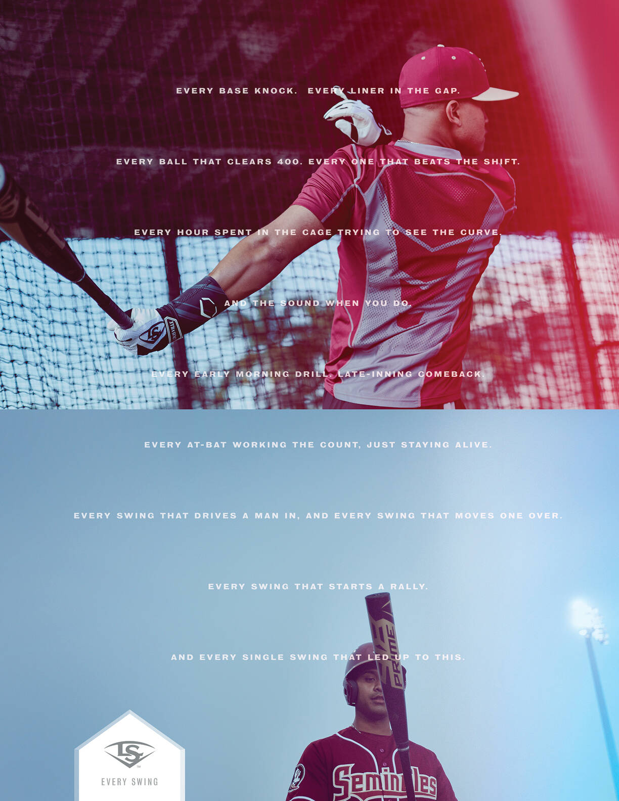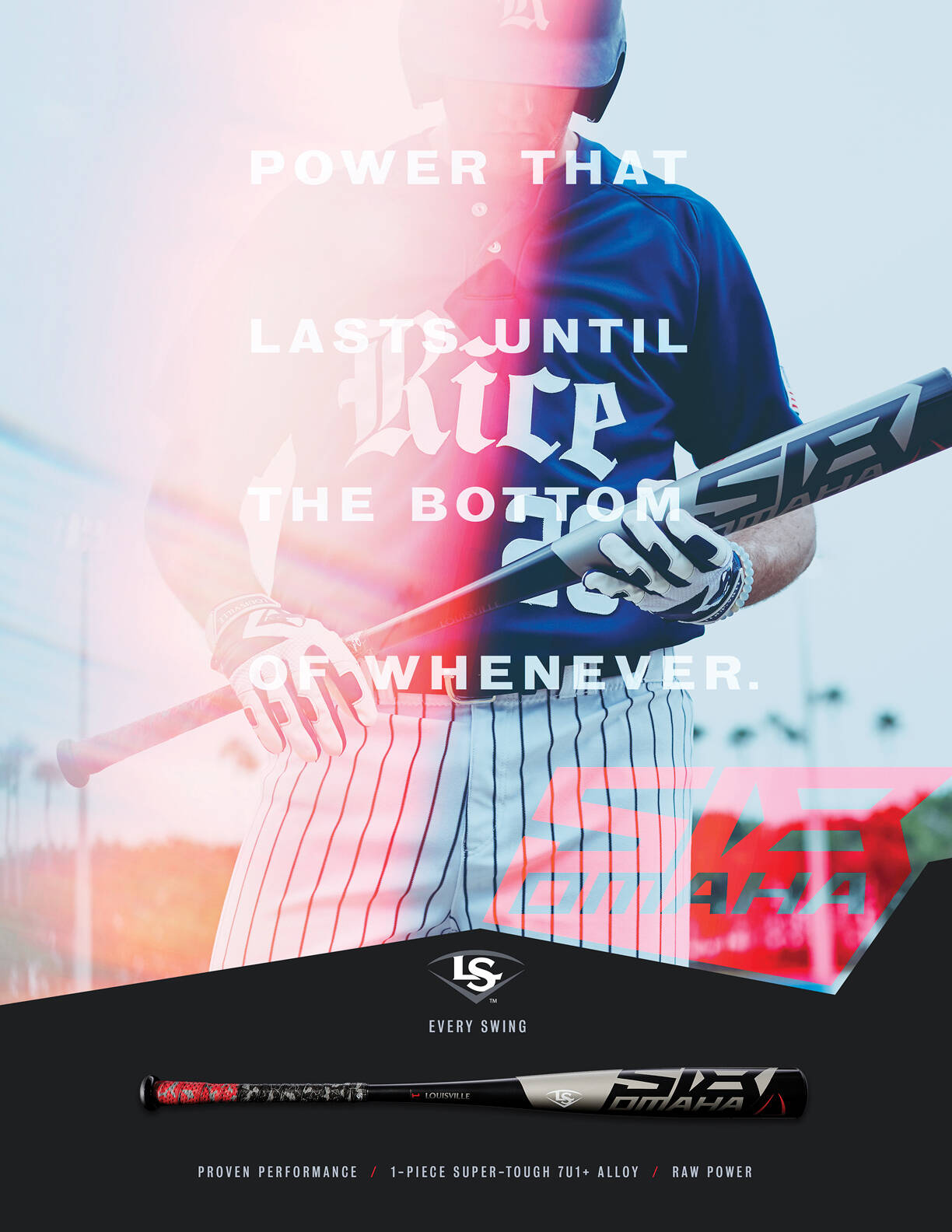 This professional campaign titled 'Custom Bats, Up Your Game, Custom Bats, All-New Lineup, P...' was published in United States in August, 2017. It was created for the brand: Louisville Slugger, by ad agency: Young & Laramore. This Film medium campaign is related to the Recreation, Leisure industry and contains 14 media assets. It was submitted over 8 years ago.