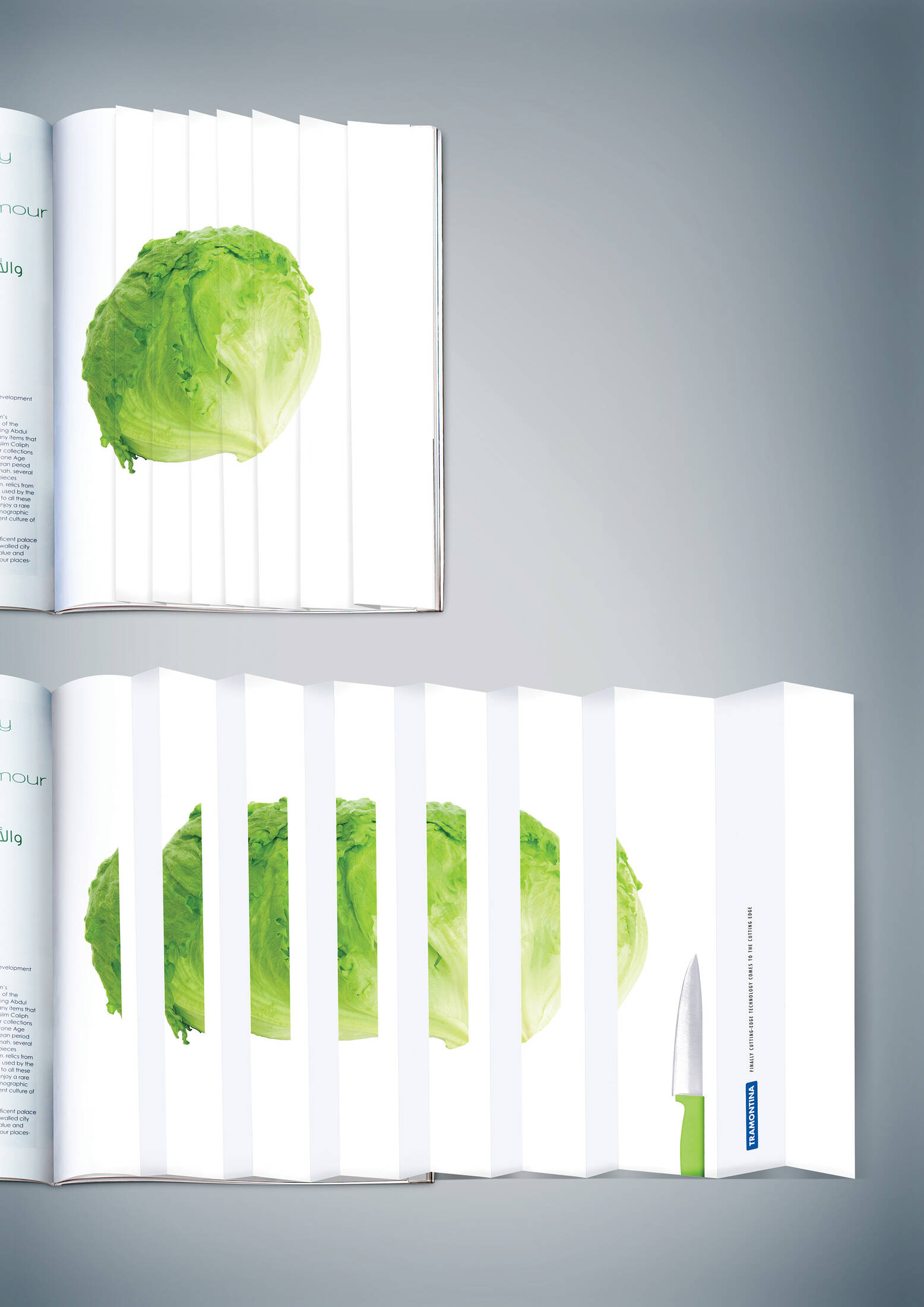 We devised a special mechanism to bring the idea to life, which was implemented across all the pieces of communication. The idea intrigued customers visiting the showroom as it gave the illusion of the vegetables being neatly cut, and equally generated high customer engagement when interacting with the communication piece in magazines.