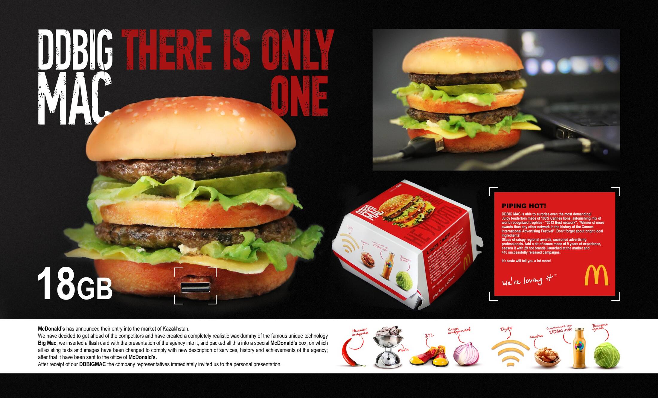 This professional campaign titled 'DDBIGMAC' was published in Kazakhstan in March, 2015. It was created for the brand: Openeyes DDB, by ad agency: DDB. This Static Images medium campaign is related to the Food industry and contains 1 media asset. It was submitted about 10 years ago.