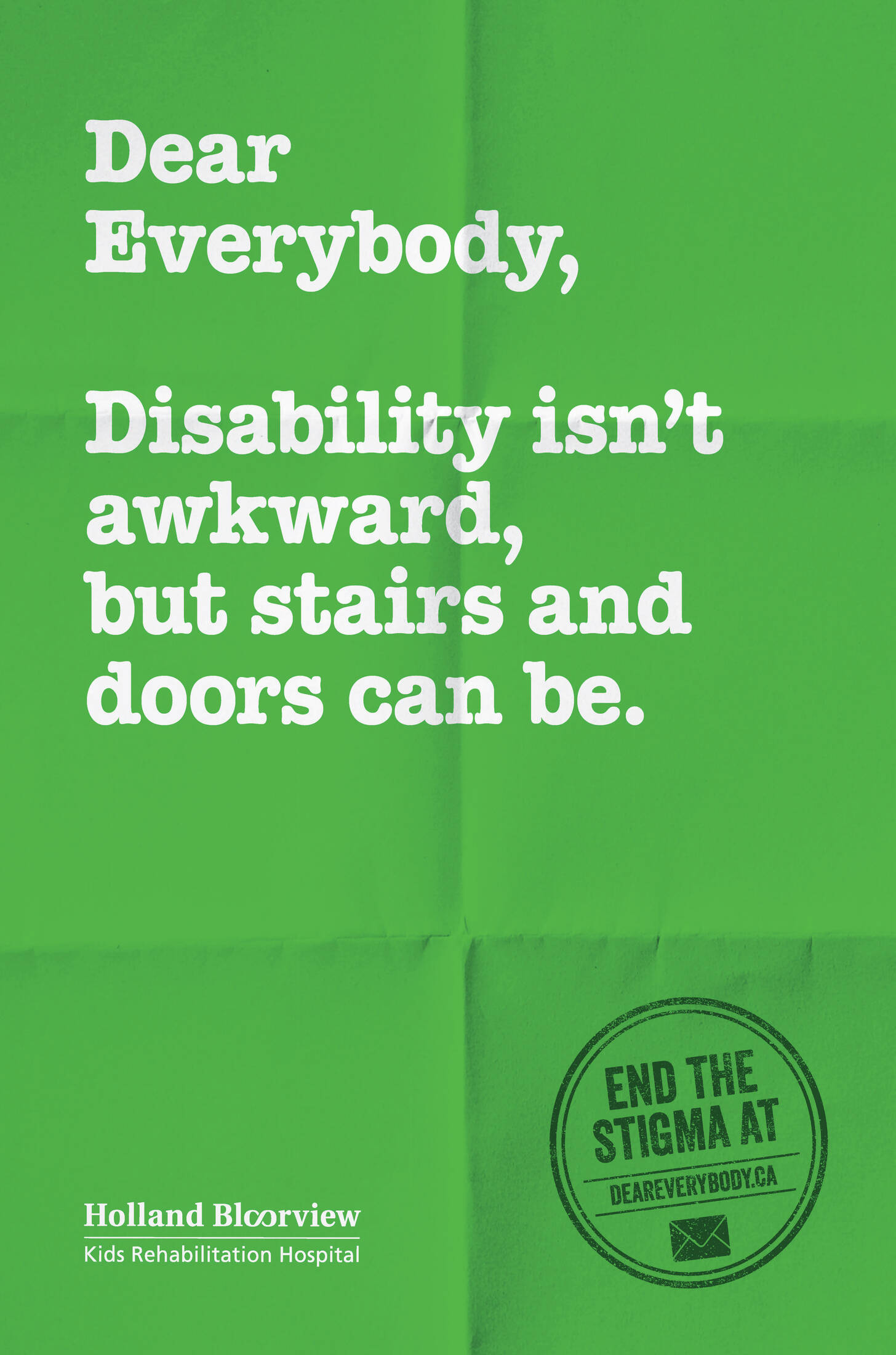 This professional campaign titled 'Dear Everybody0, Dear Everybody, Dear Everybody, Dear Eve...' was published in Canada in August, 2017. It was created for the brand: Holland Bloorview Kids Rehabilitation, by ad agency: KBS. This OOH Outdoor medium campaign is related to the Professional Services industry and contains 10 media assets. It was submitted over 8 years ago.