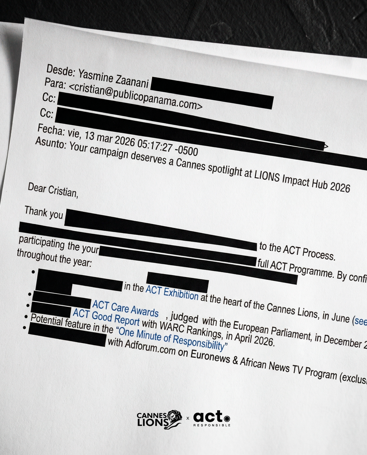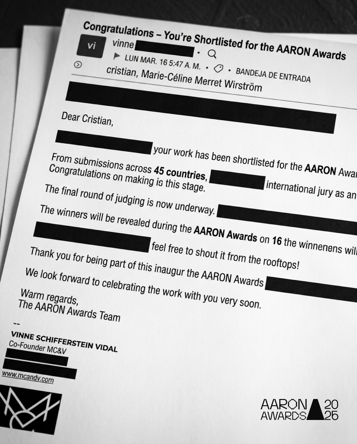 By hiding logistical details and highlighting only the milestones achieved on international platforms such as Lürzer’s Archive the AARON Awards and the Cannes Lions environment we transformed our achievements into irrefutable evidence that the system can no longer ignore. It is a statement of intent where high level talent is presented as an objective fact that transcends confidentiality and geographical borders. The result is a narrative of intrigue where design acts as forensic proof of our competitiveness within the worlds creative elite.