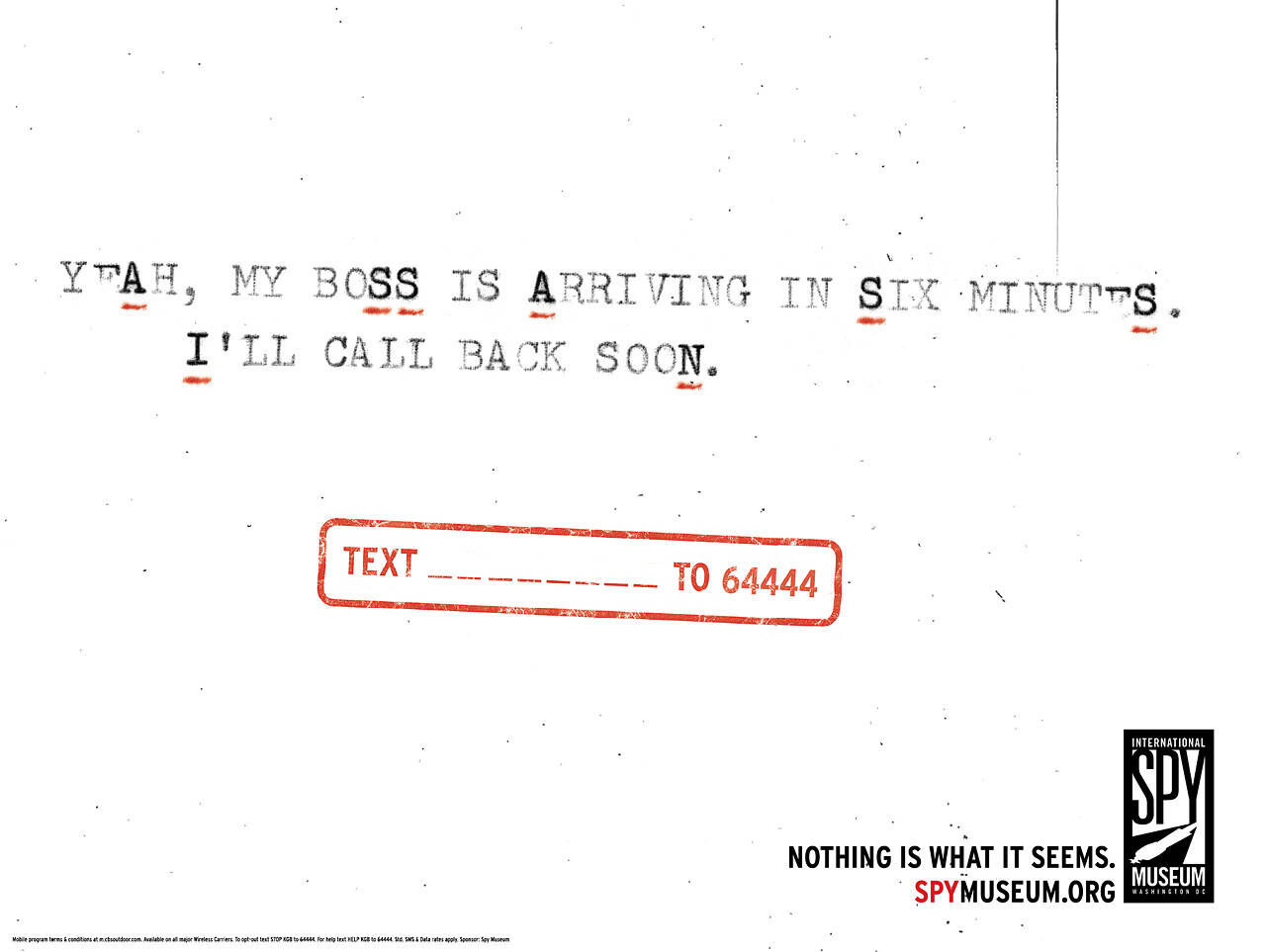 This professional campaign titled 'Deep Cover, Lex, Deep Cover, Kali, Deep Cover, Hector, De...' was published in United States in July, 2010. It was created for the brand: International Spy Museum, by ad agency: Red Tettemer. This Print medium campaign is related to the Recreation, Leisure industry and contains 12 media assets. It was submitted over 15 years ago.
