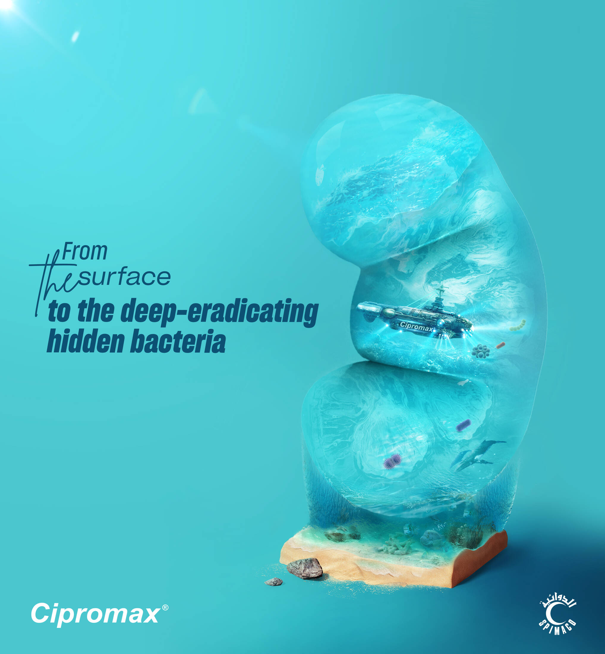The concept focuses on utilizing a product called Cipromax for deep eradication of bacteria within the kidney and urinary system. This approach is likened to a submarine's ability to reach the depths of the ocean, highlighting Cipromax's capability to penetrate deeply into bacterial colonies within these organs. By employing advanced technology akin to a submarine's navigation through depths, Cipromax could effectively eliminate bacteria within the kidney and urinary system, providing thorough sanitation and addressing bacterial infections in these areas. This underscores the significance of comprehensive bacterial eradication for maintaining urinary health and preventing infections within these critical bodily systems.