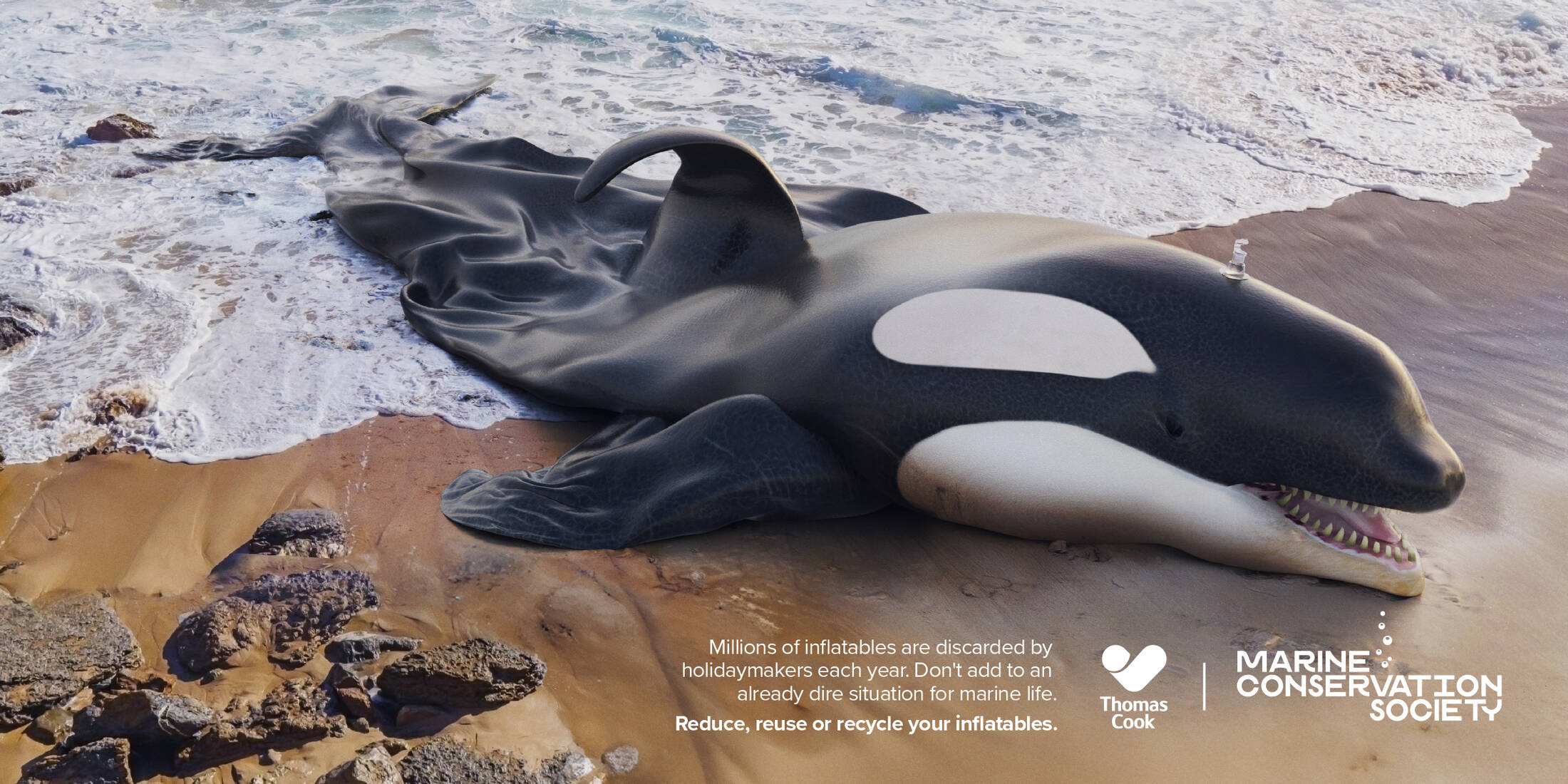 To raise awareness of the environmental impact of abandoned inflatables, Thomas Cook and the Marine Conservation Society have launched a new campaign by McCann Birmingham. Running across OOH, including airports, and social throughout the summer, the stark images of a deflated dolphin, turtle and whale provide a shocking reminder of the impact of ditching lilos and rubber rings.