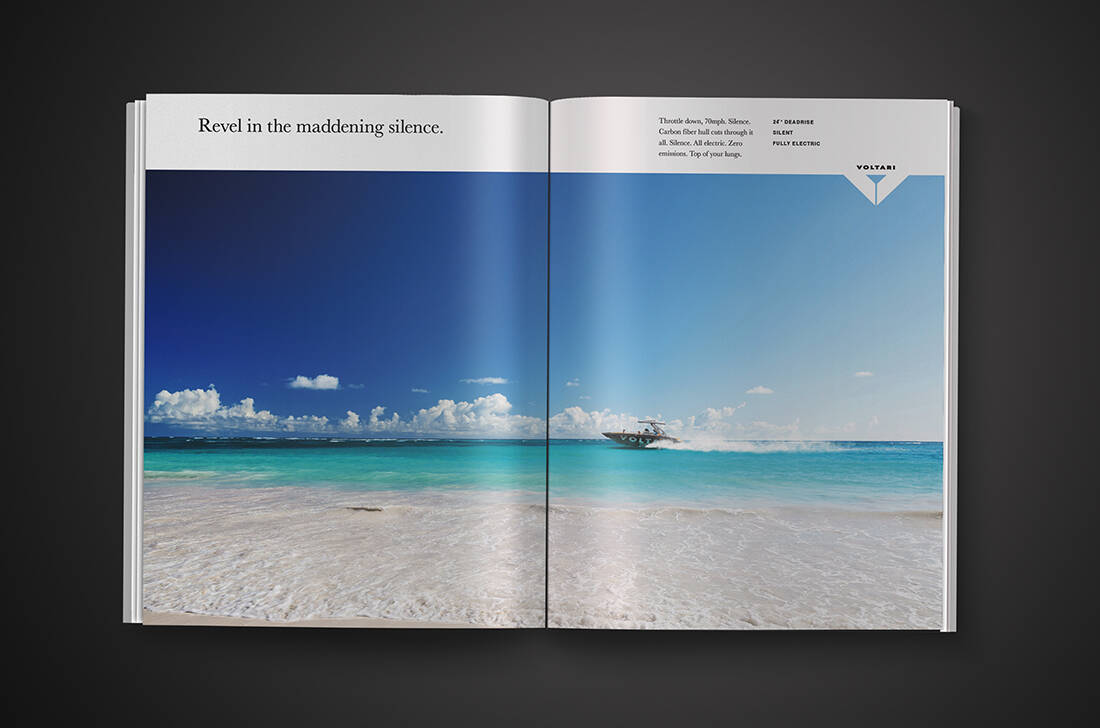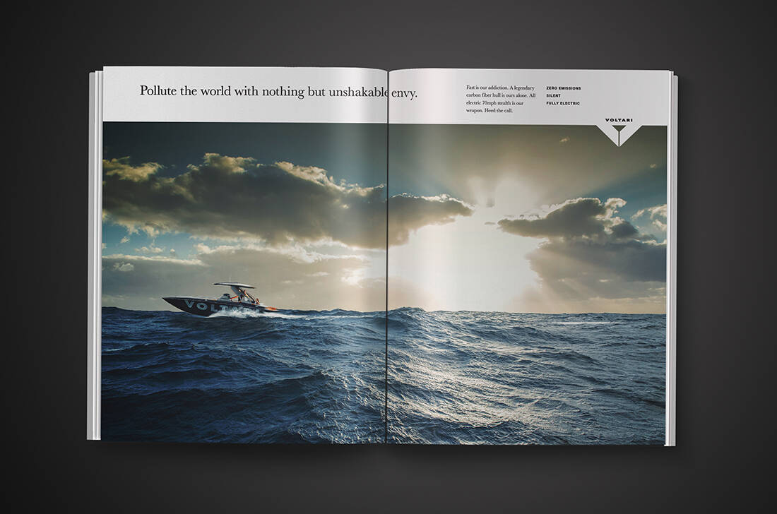 This professional campaign titled 'Defy The Past To Define The Future' was published in United States in March, 2025. It was created for the brand: Voltari Electric Boats, by ad agency: The Republik. This Print medium campaign is related to the Automotive and Personal Transportation and Transport industries and contains 4 media assets. It was submitted 1 day ago.